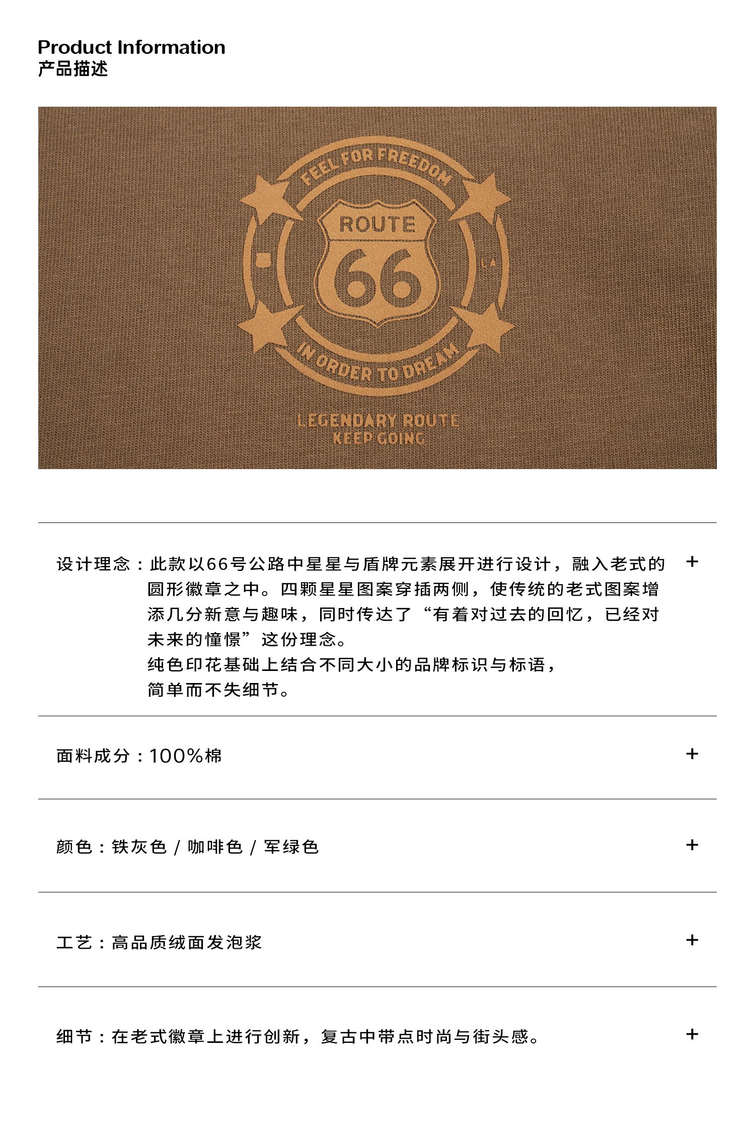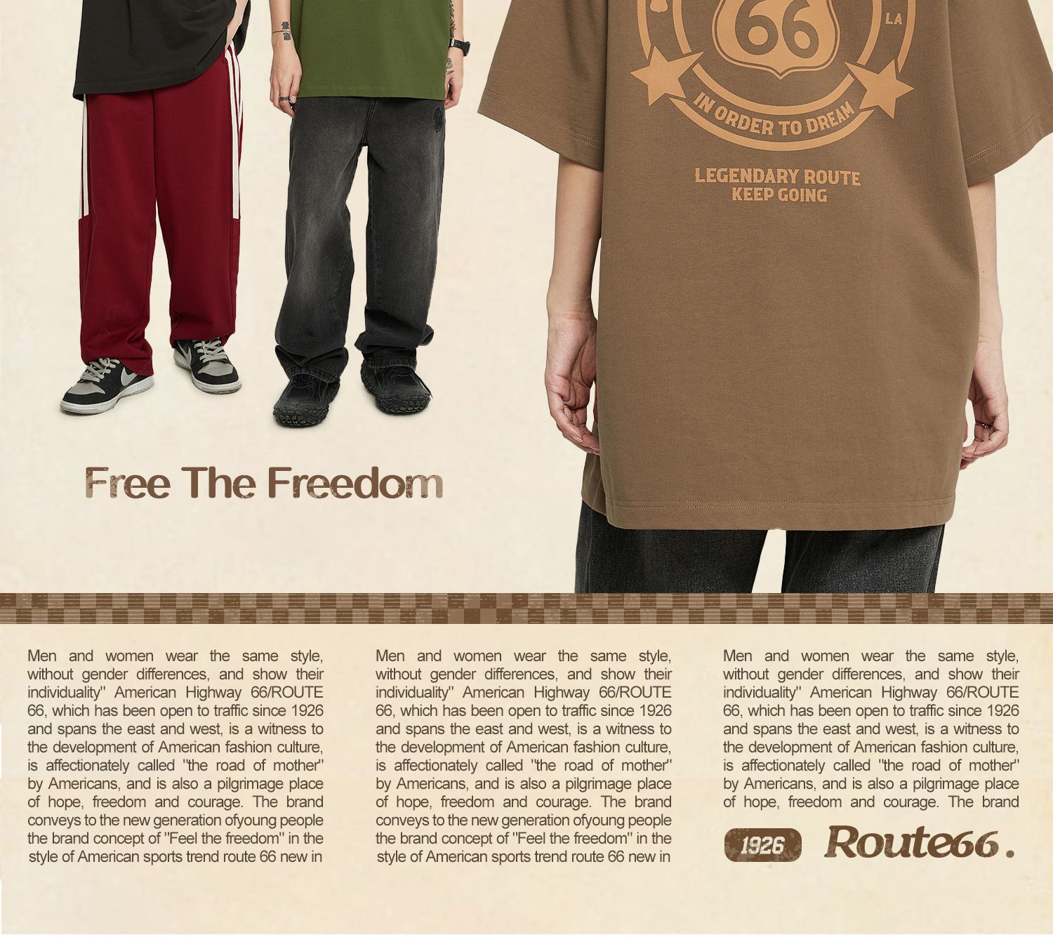 商品名称:66号公路/ROUTE66春夏季重磅320G短袖男情侣装美式复古潮流t恤
