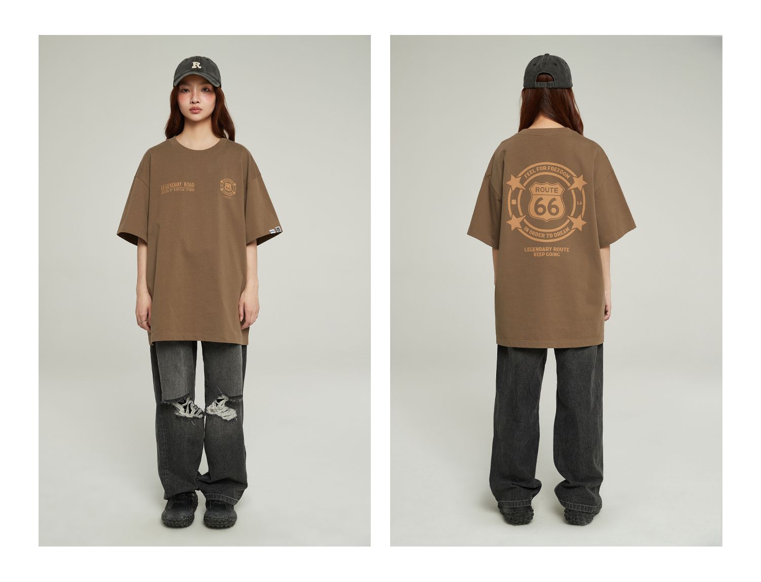 66号公路/ROUTE66春夏季重磅320G短袖男情侣装美式复古潮流t恤
