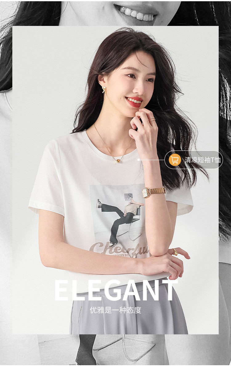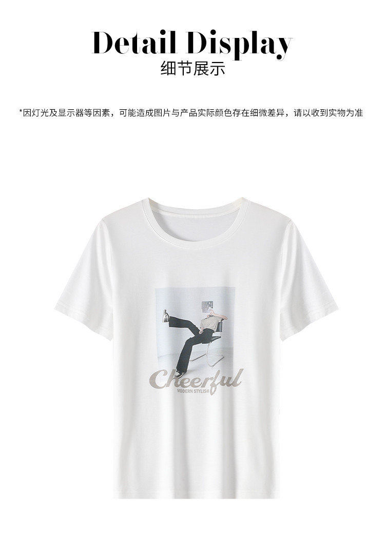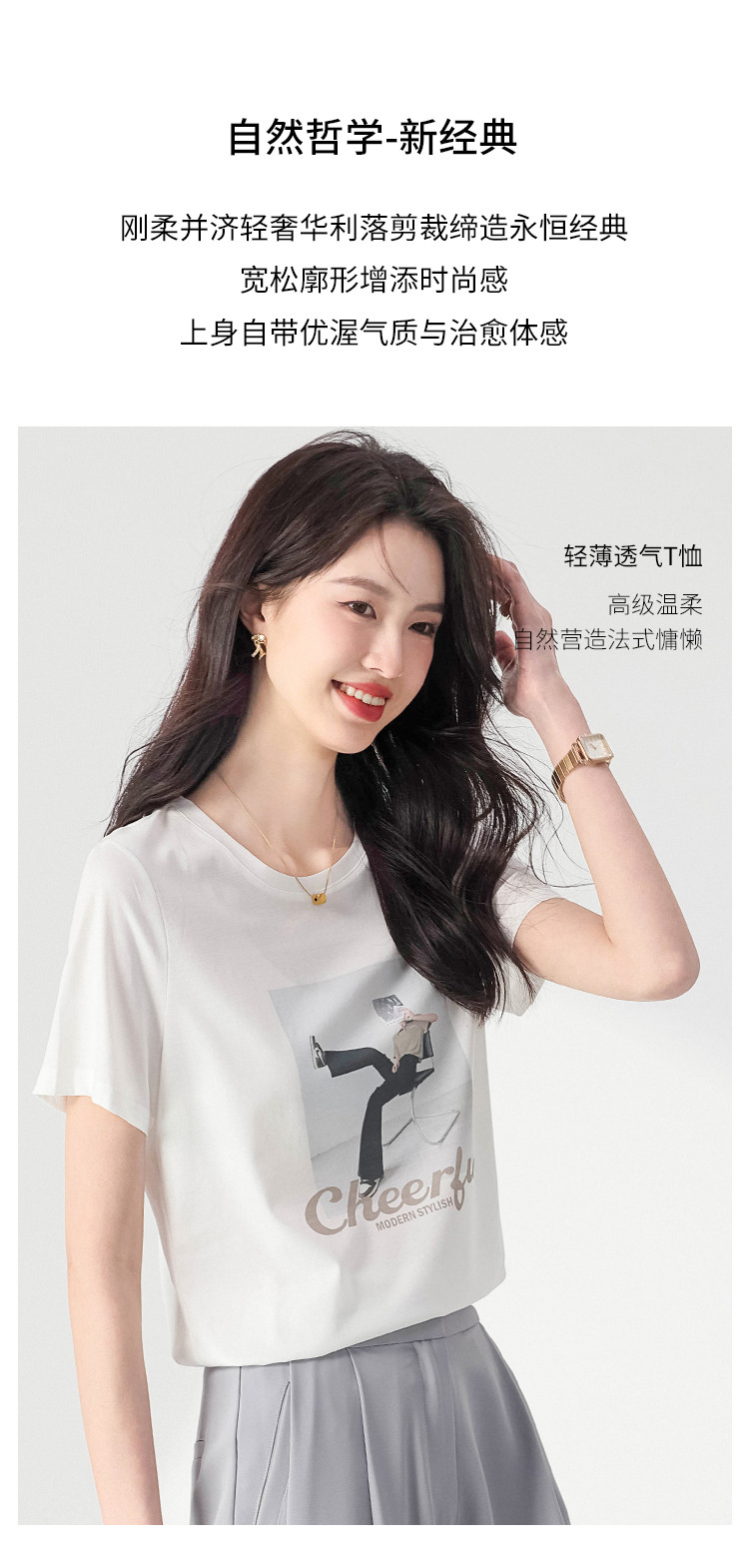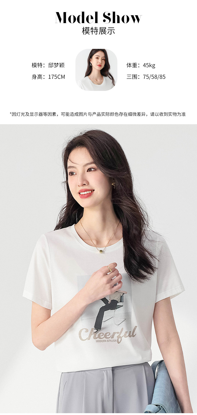 商品名称:【含桑蚕丝】夏季轻薄透气印花圆领短袖女士t恤上衣女 089875