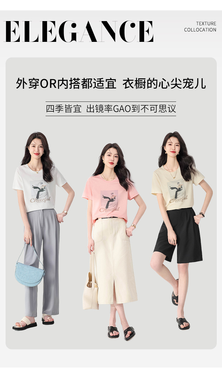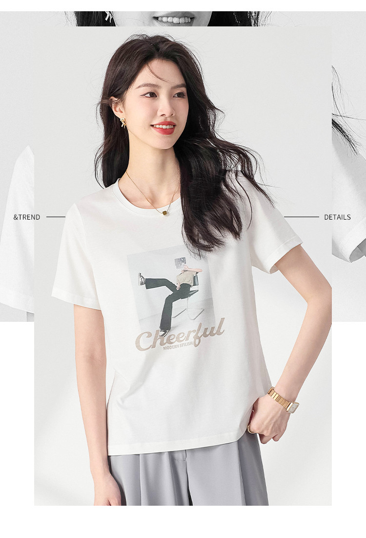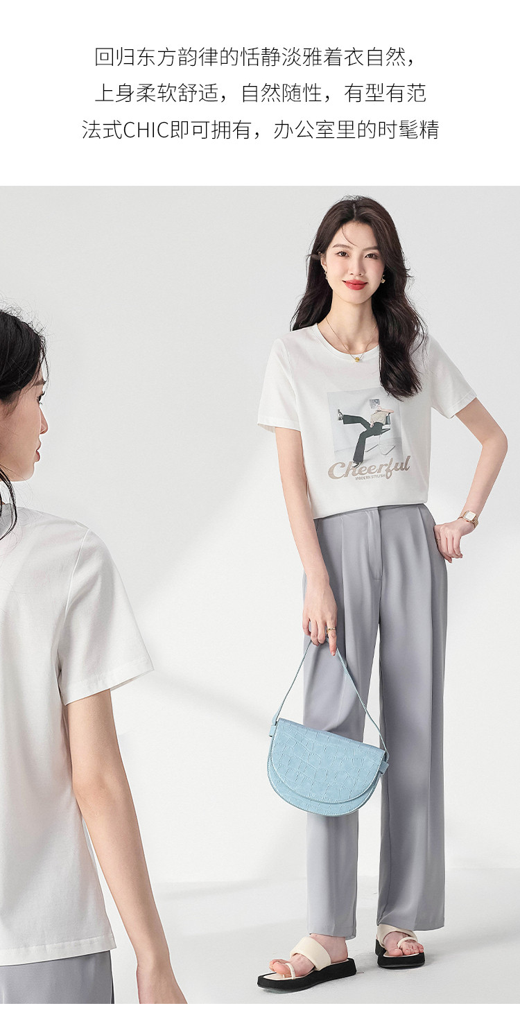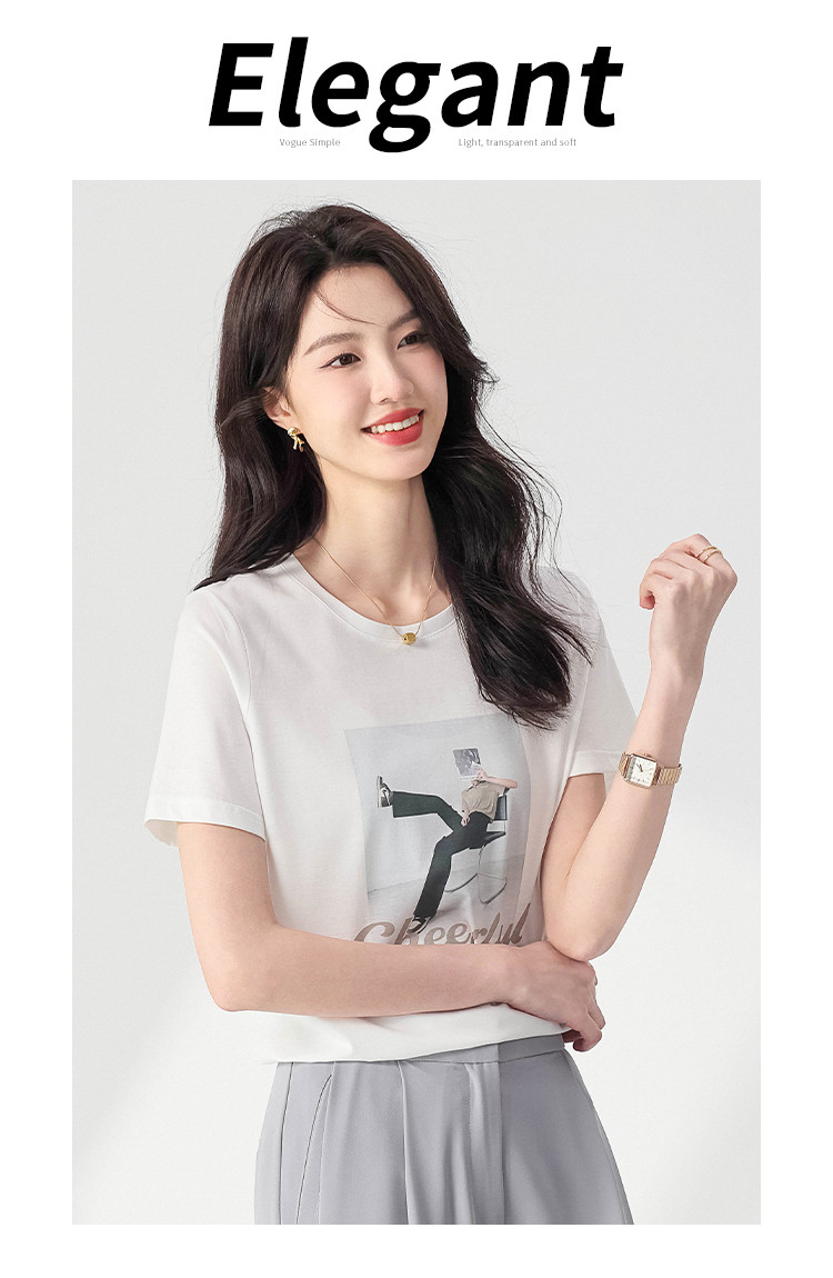 商品名称:【含桑蚕丝】夏季轻薄透气印花圆领短袖女士t恤上衣女 089875