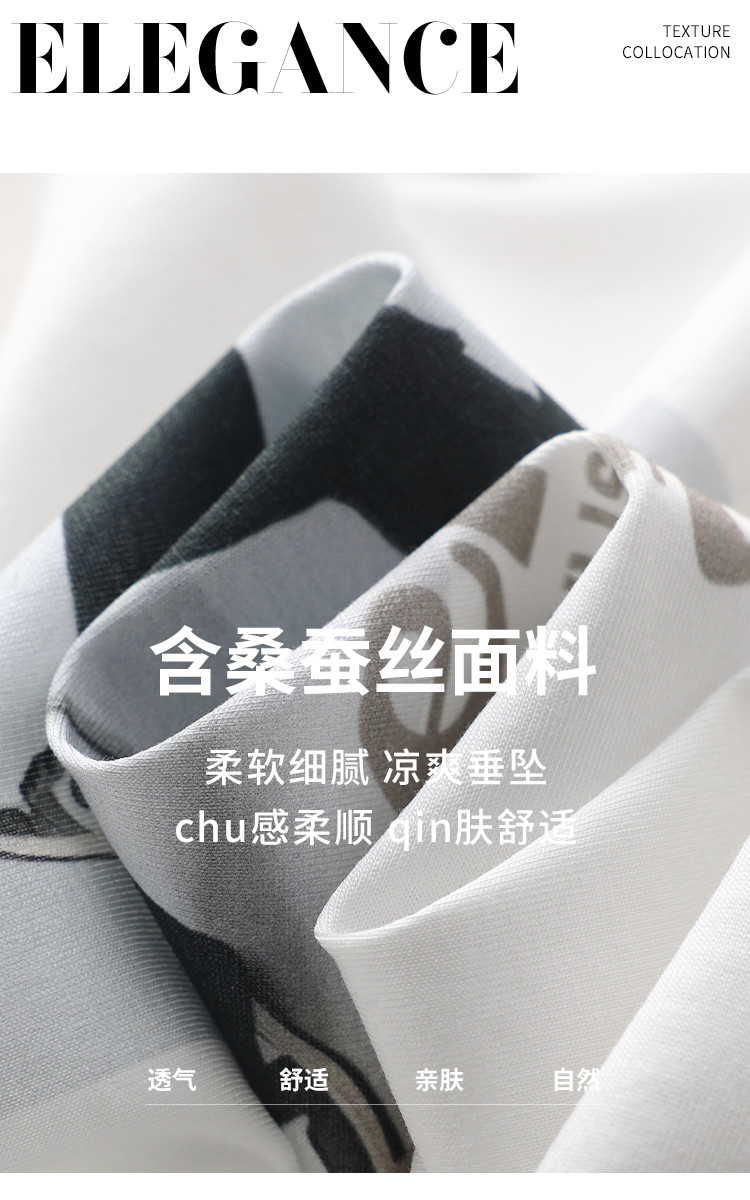 【含桑蚕丝】夏季轻薄透气印花圆领短袖女士t恤上衣女 089875