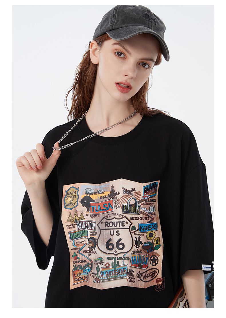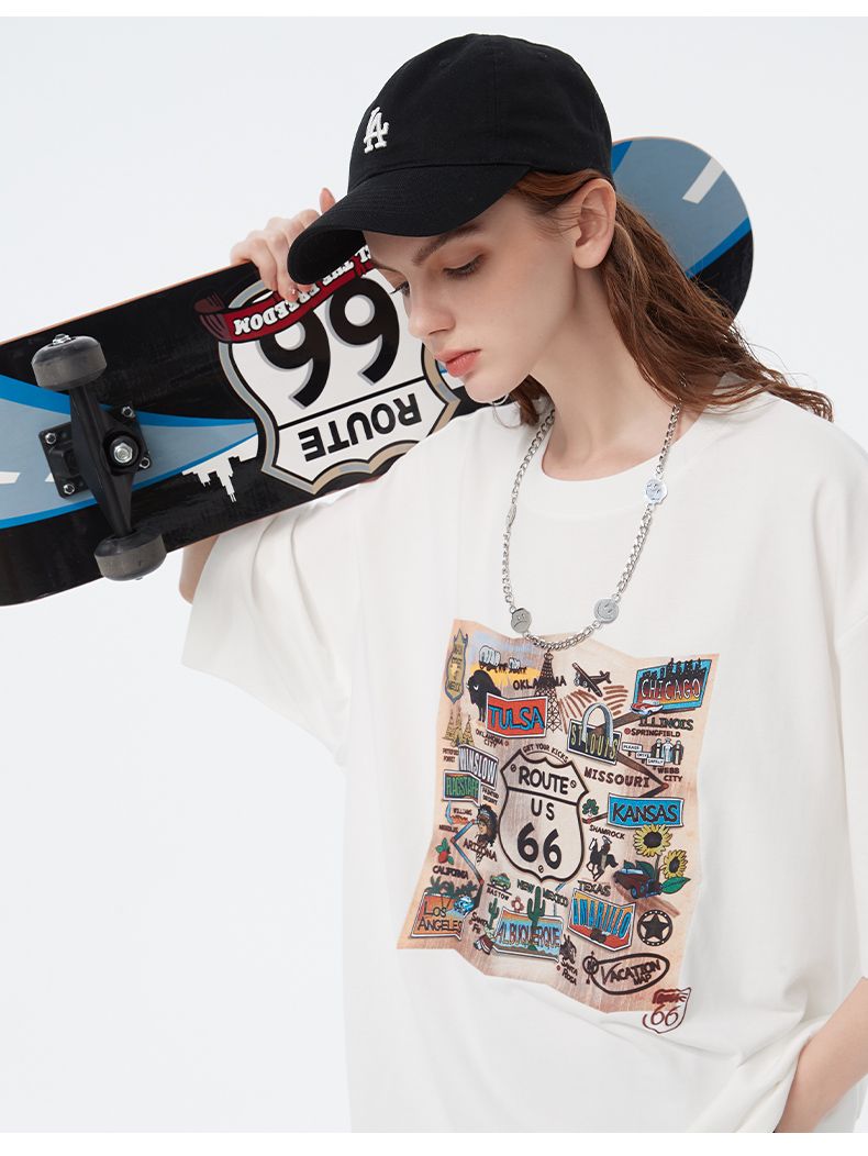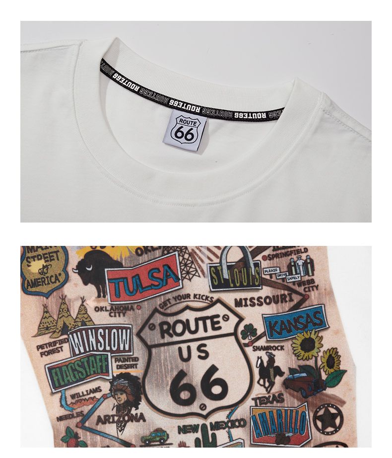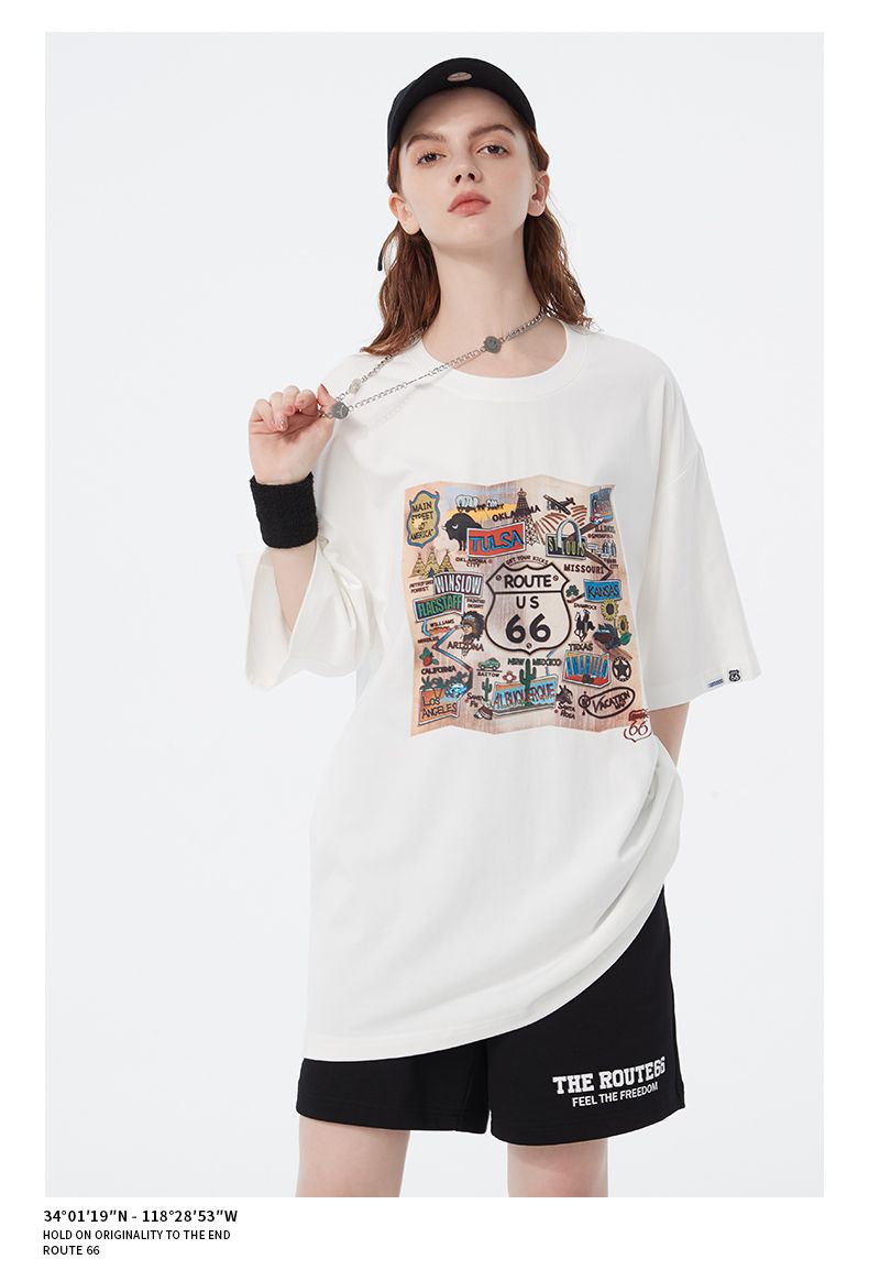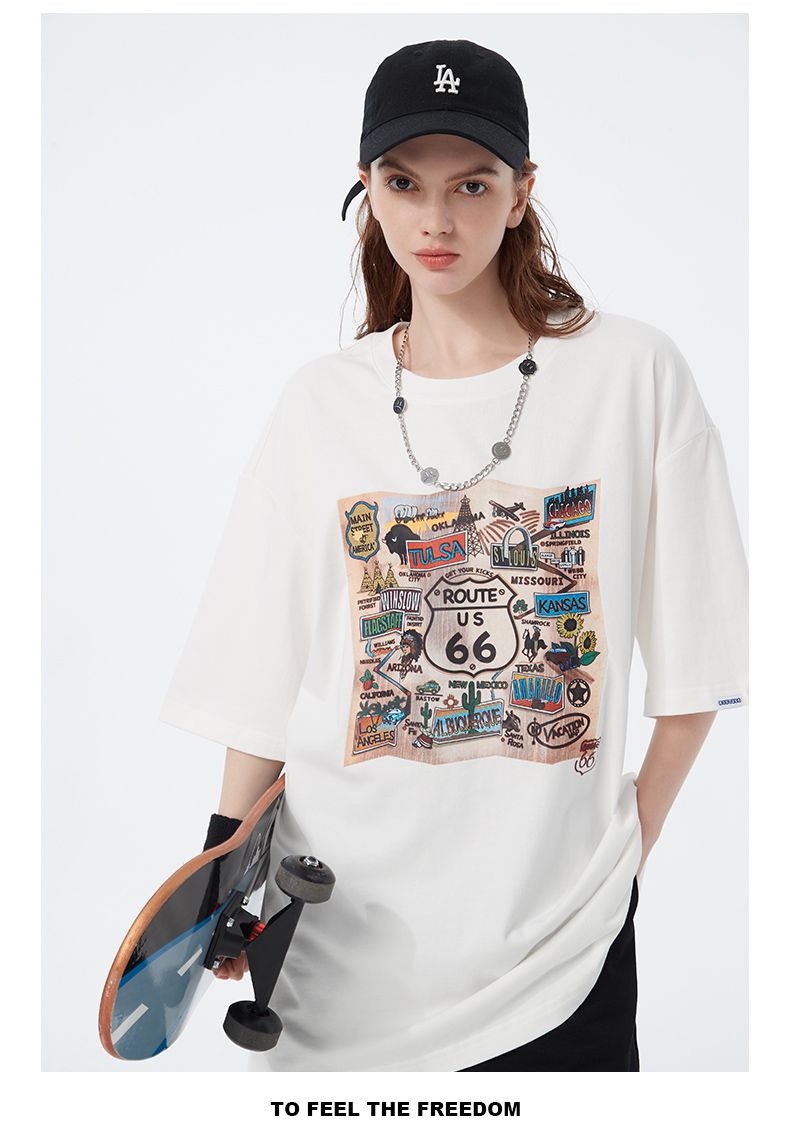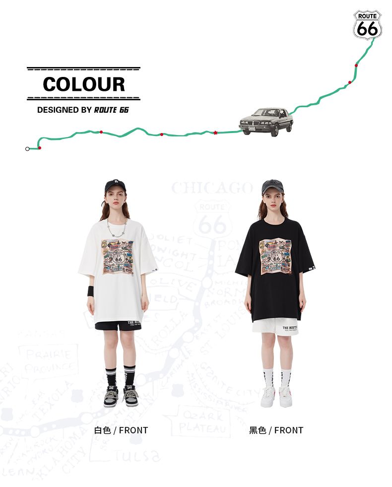66号公路/ROUTE66 短袖T恤男女同款春夏季纯棉宽松情侣装潮牌体恤