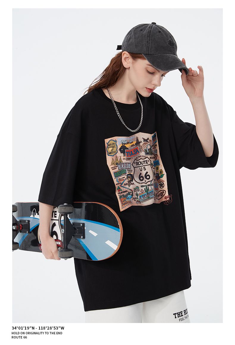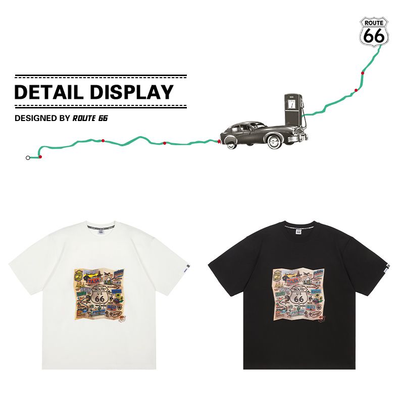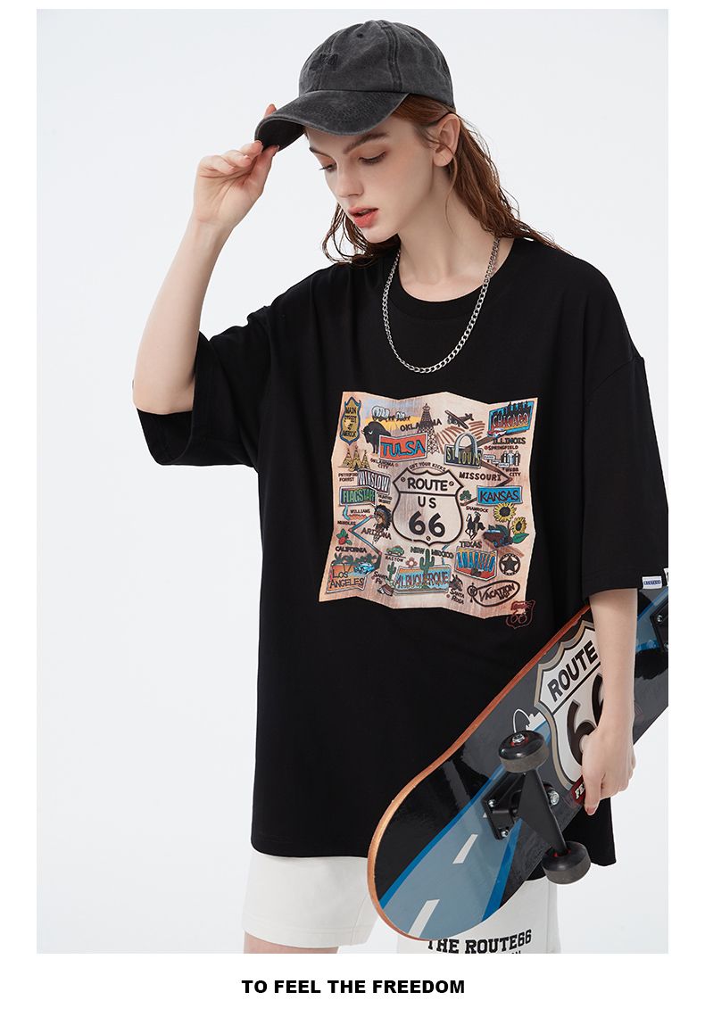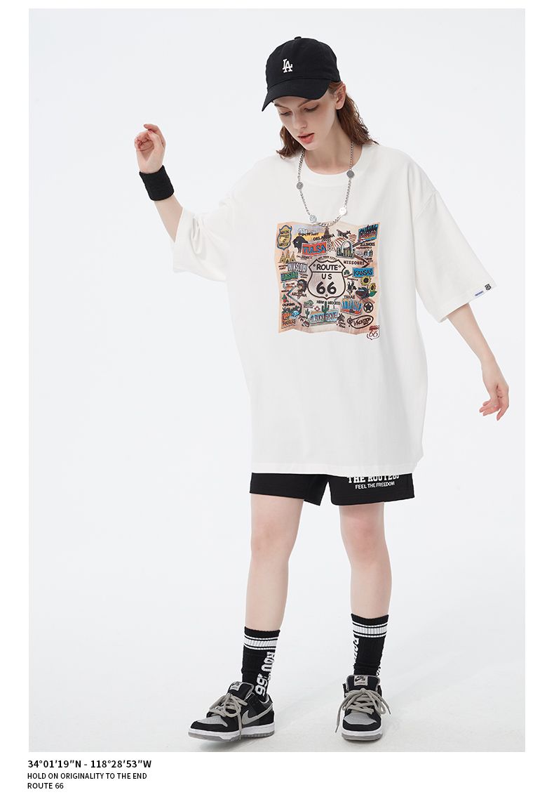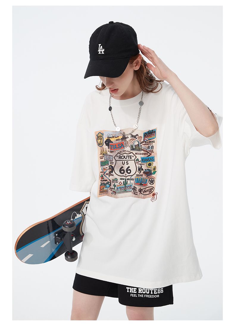 66号公路/ROUTE66 短袖T恤男女同款春夏季纯棉宽松情侣装潮牌体恤