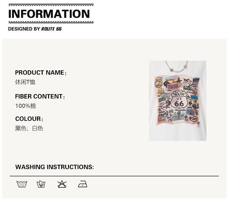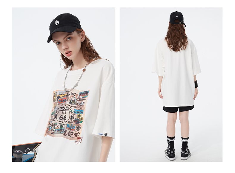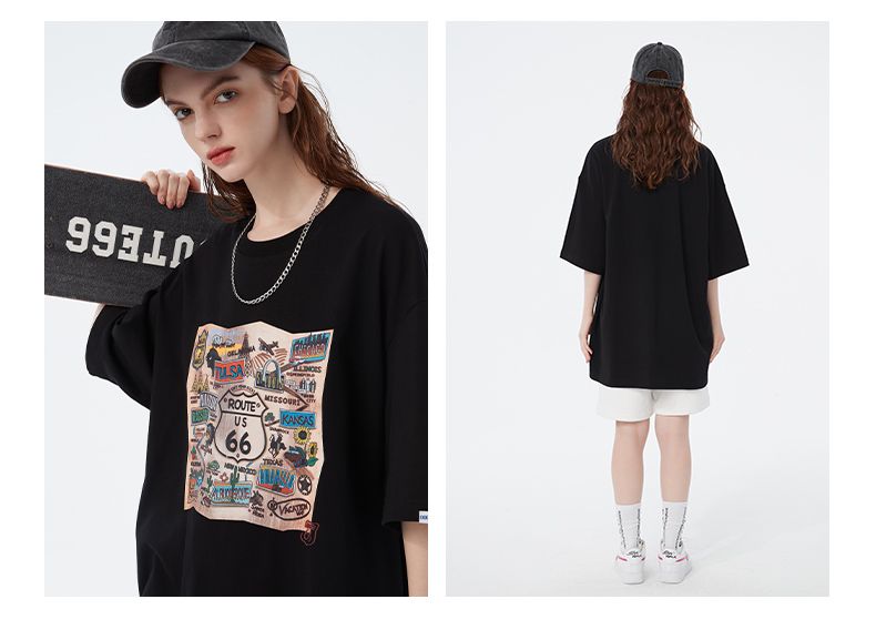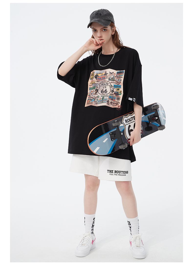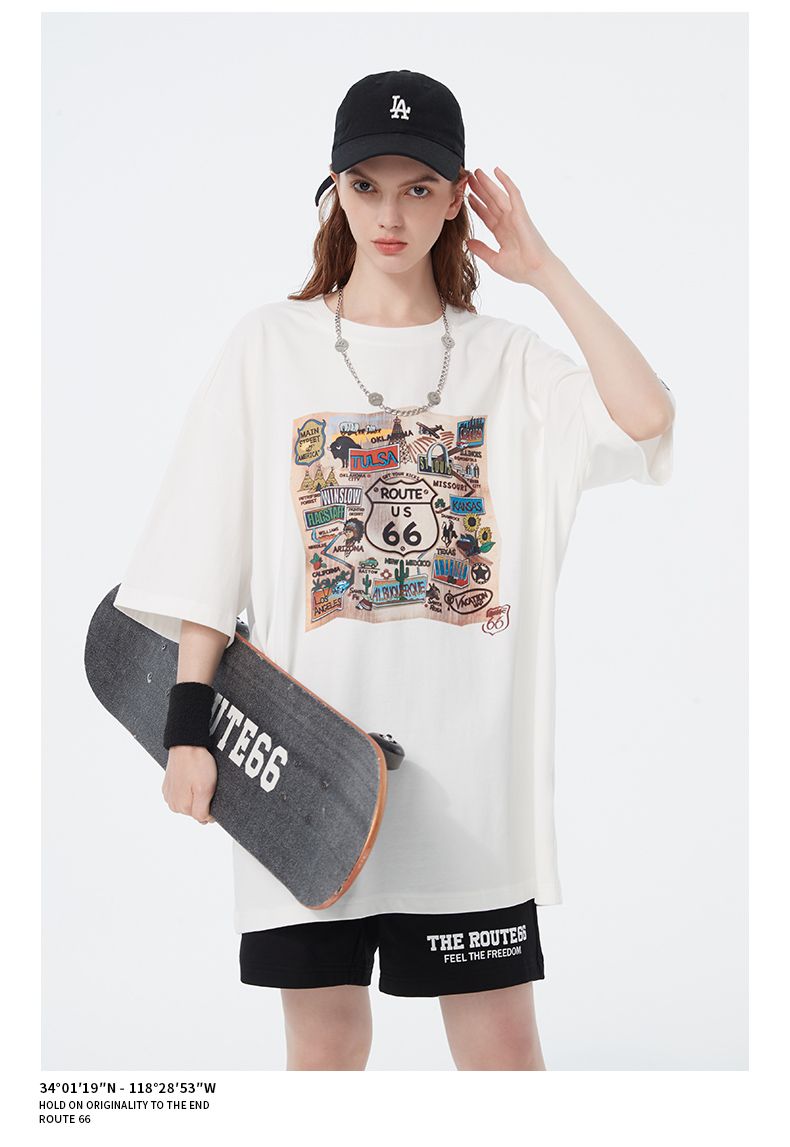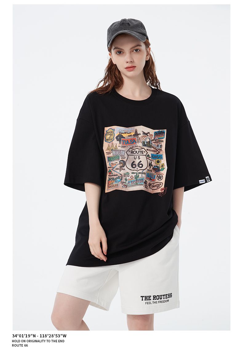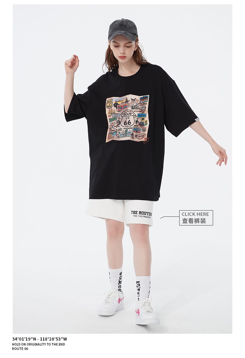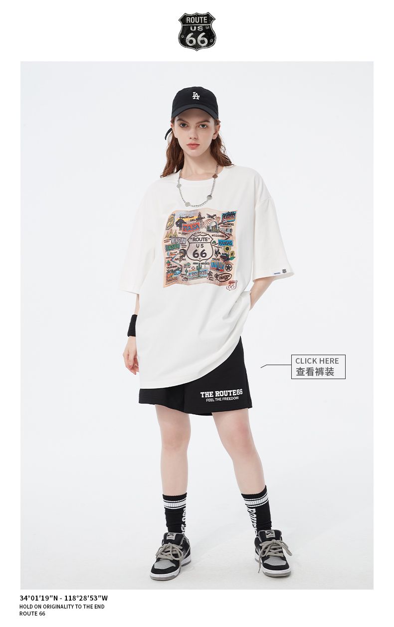 商品名称:66号公路/ROUTE66 短袖T恤男女同款春夏季纯棉宽松情侣装潮牌体恤