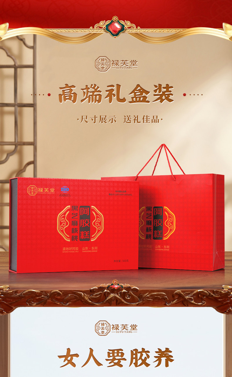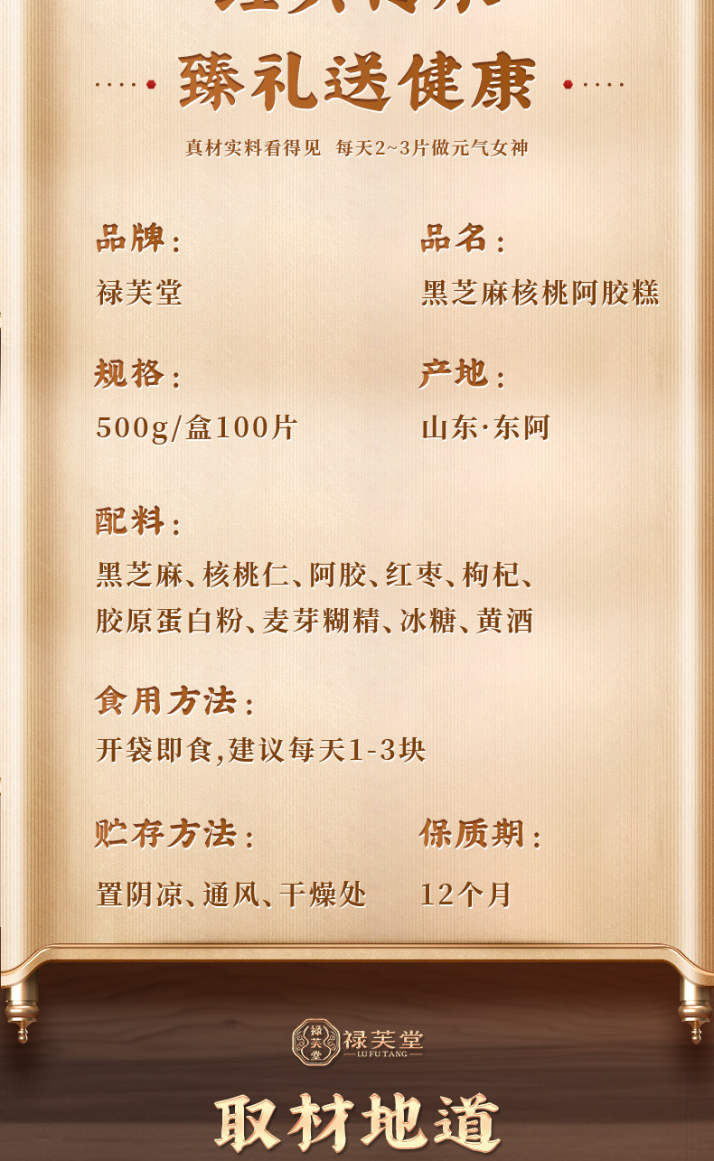 商品名称:禄芙堂 阿胶糕(黑芝麻核桃)500g/盒