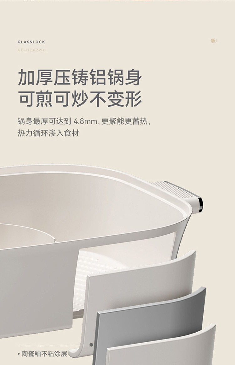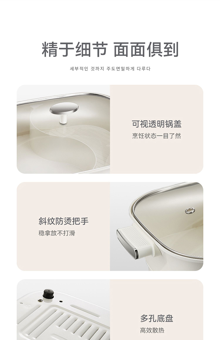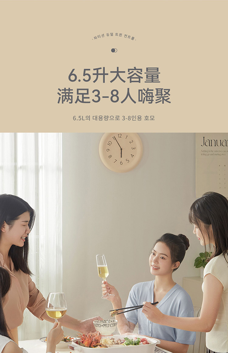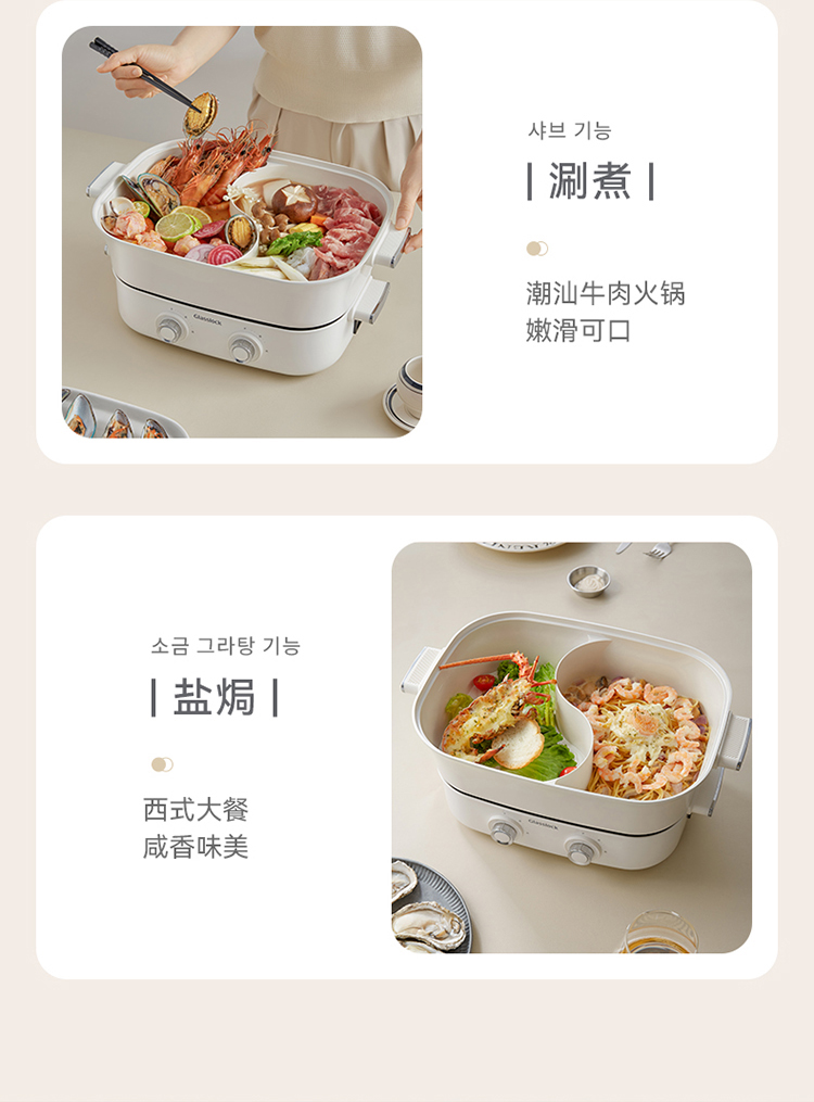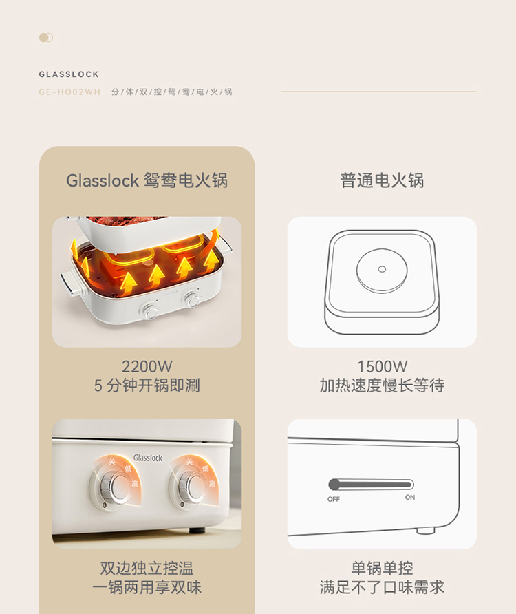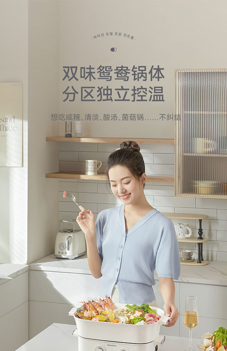 GLASSLOCK韩国品牌速沸电火锅6.5L鸳鸯锅大功率多用途锅电煮锅多功能锅分体式家用电热锅涮肉锅火锅锅具 2200W
