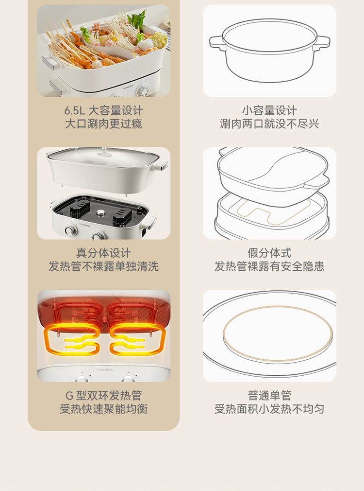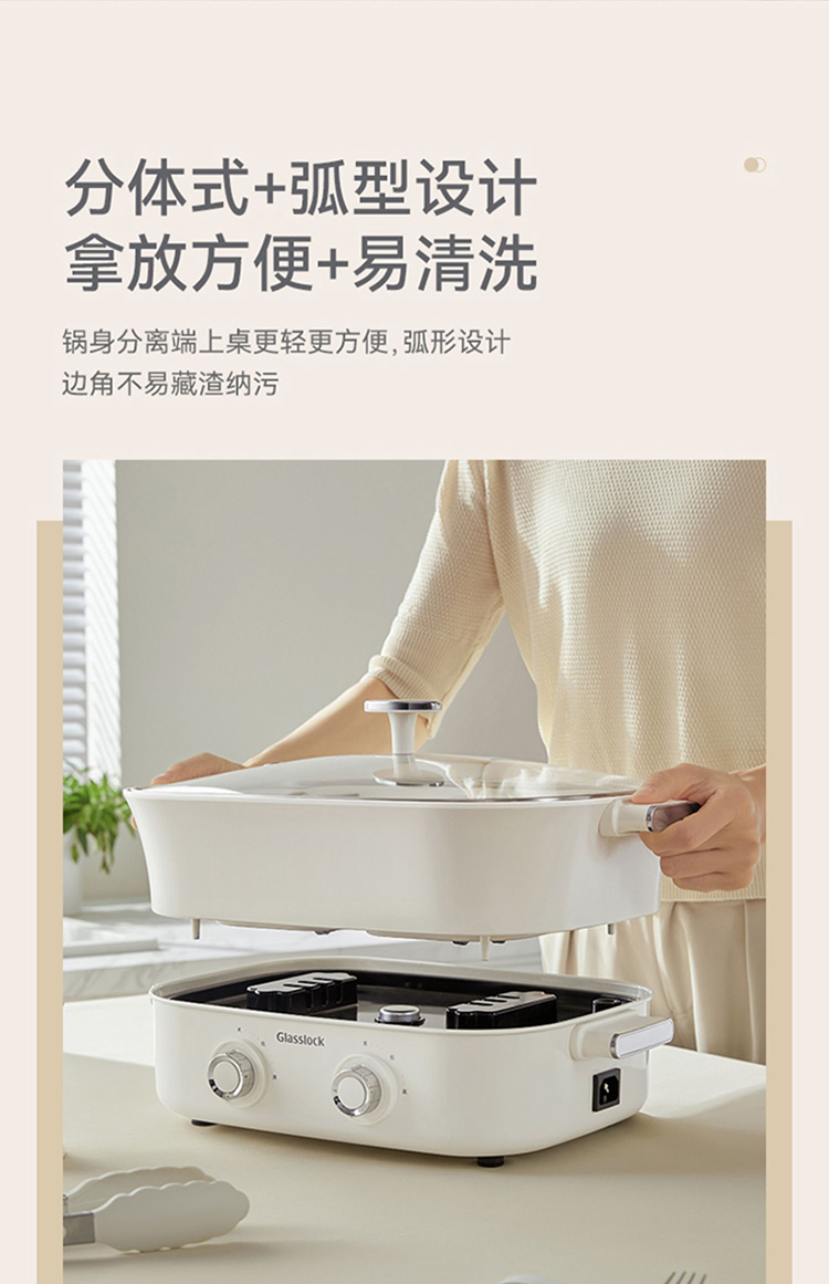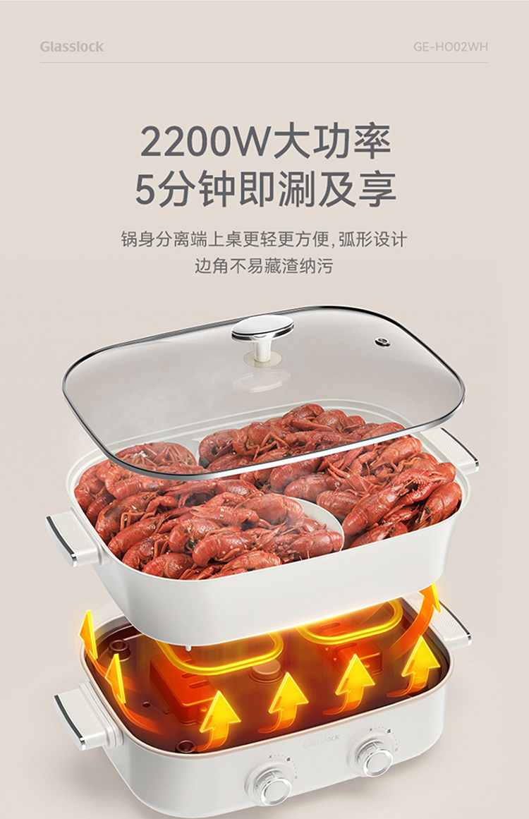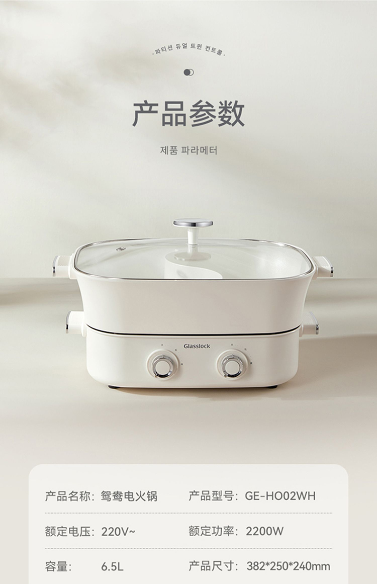 商品名称:GLASSLOCK韩国品牌速沸电火锅6.5L鸳鸯锅大功率多用途锅电煮锅多功能锅分体式家用电热锅涮肉锅火锅锅具 2200W