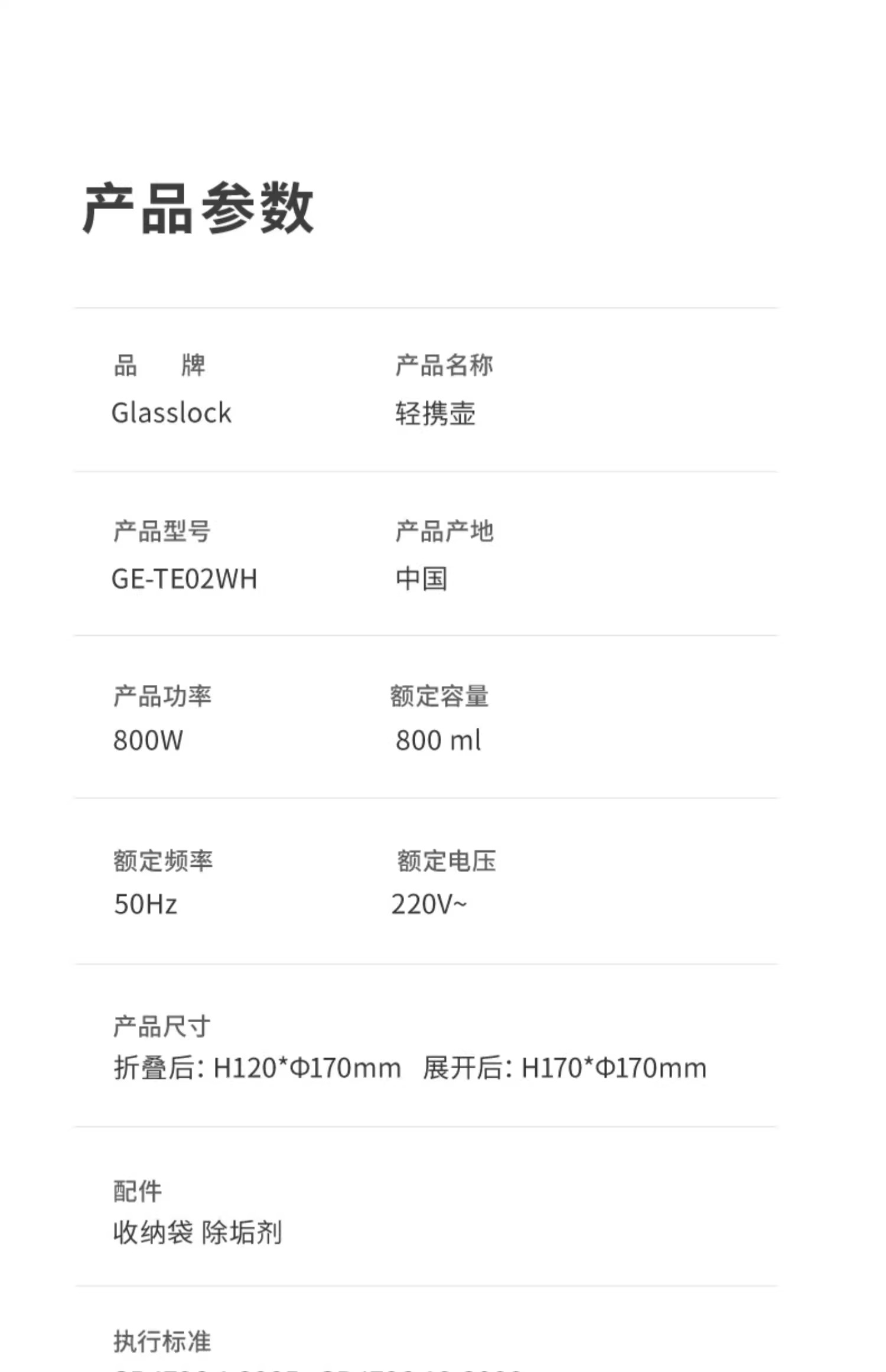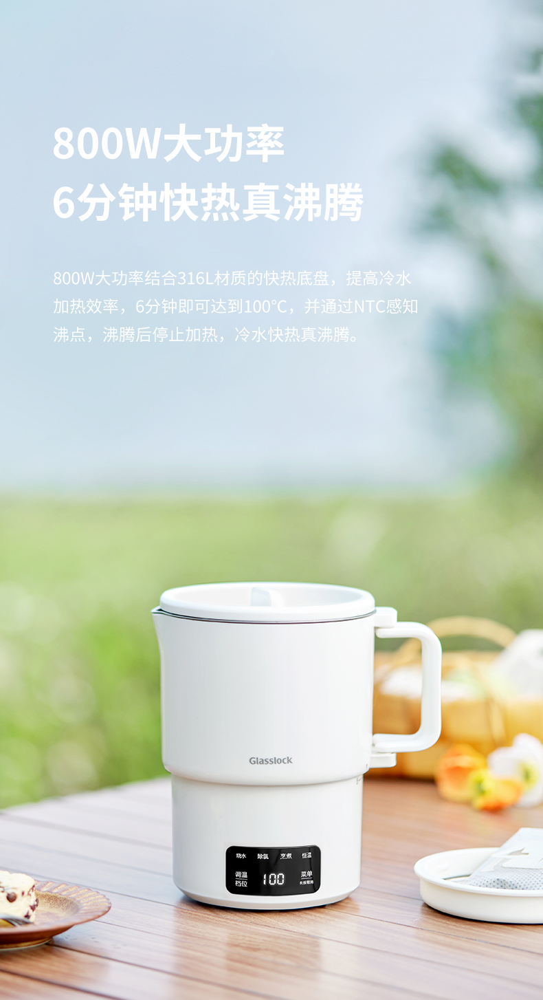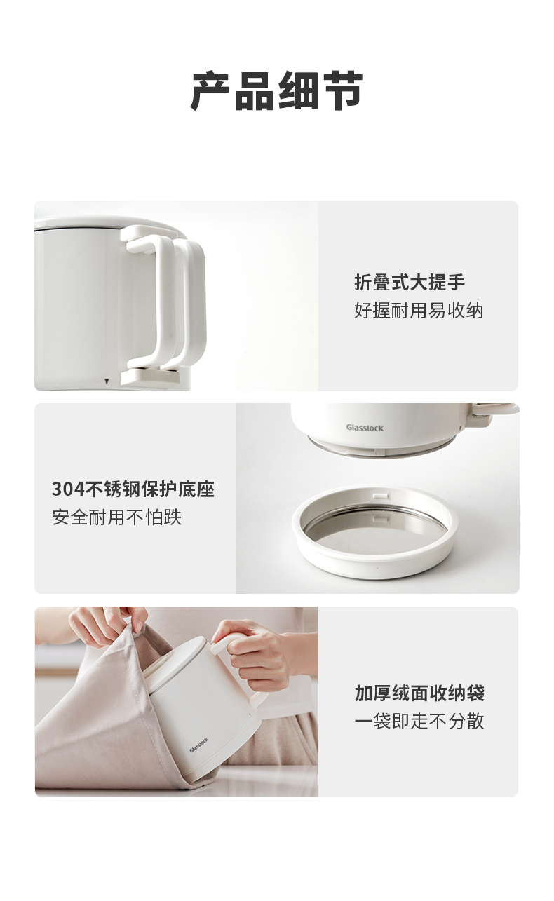 商品名称:GLASSLOCK韩国便携式电热烧水壶电水壶折叠316不锈钢水壶烧水杯旅行家用养生水壶电热水壶学生泡面杯 升级折叠把手G