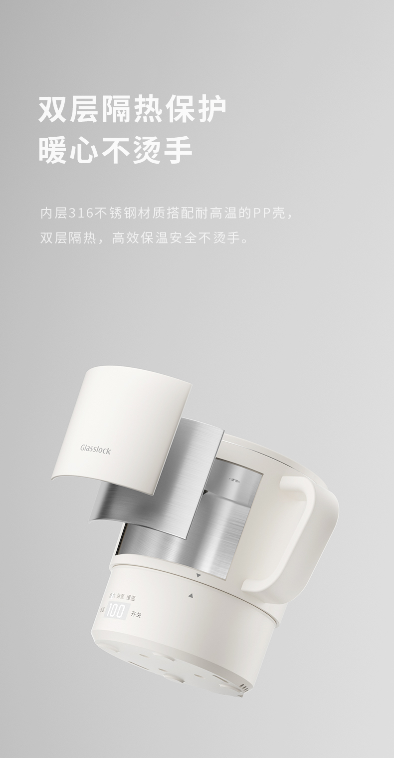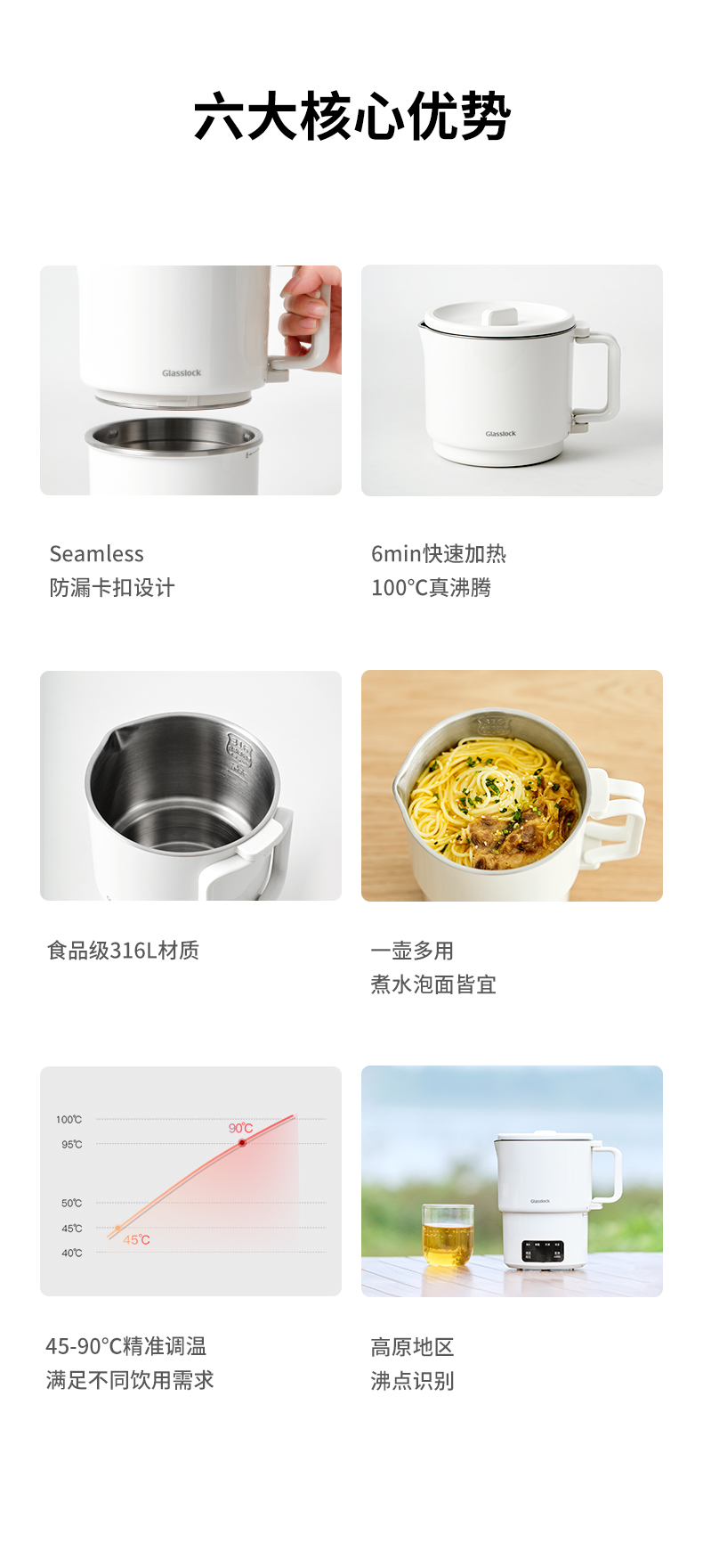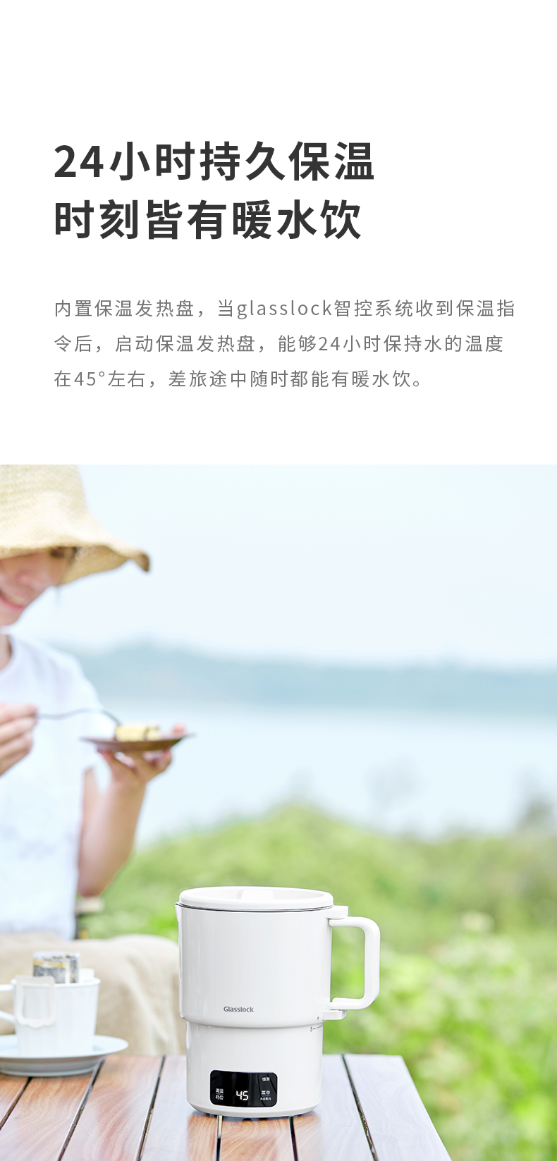 商品名称:GLASSLOCK韩国便携式电热烧水壶电水壶折叠316不锈钢水壶烧水杯旅行家用养生水壶电热水壶学生泡面杯 升级折叠把手G