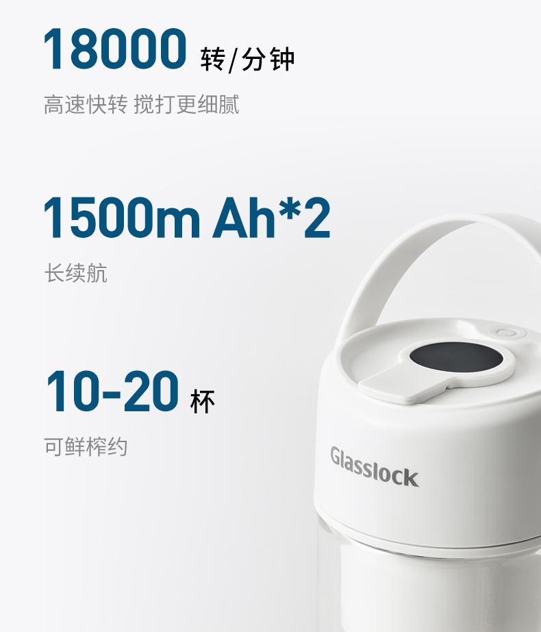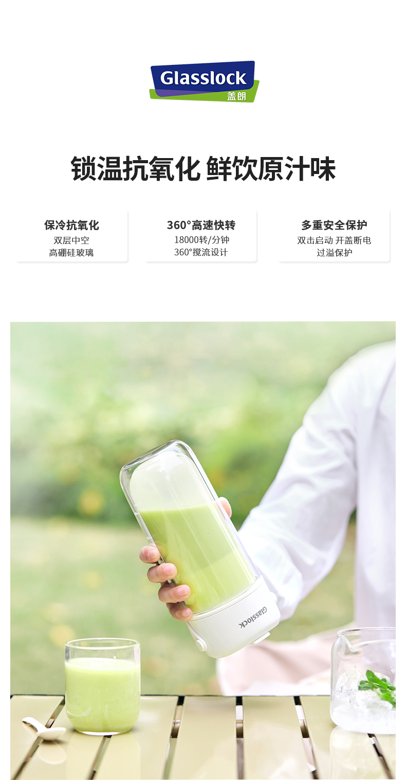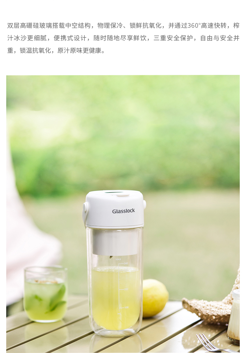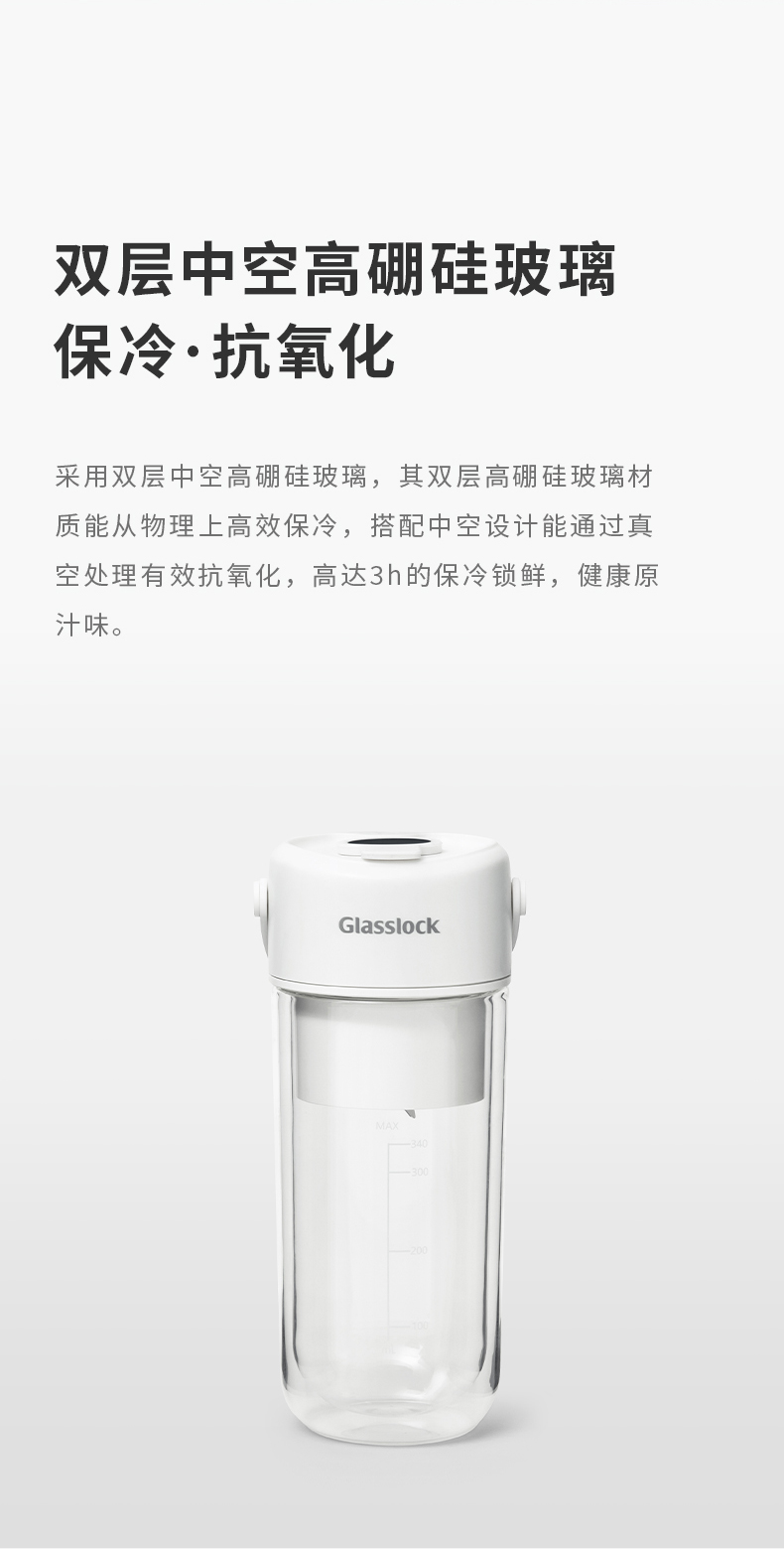 GLASSLOCK榨汁杯双层保冷便携式榨汁机无线小型可碎冰玻璃果汁机 GE-JU03WH榨汁杯