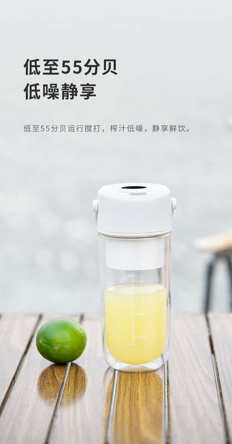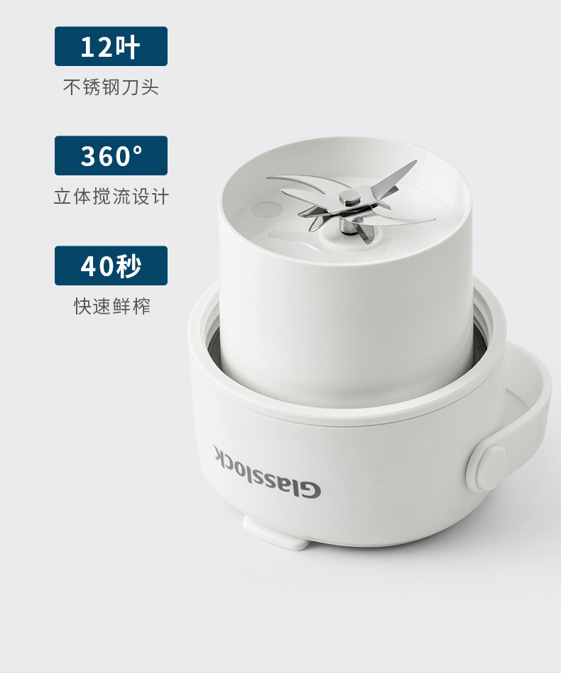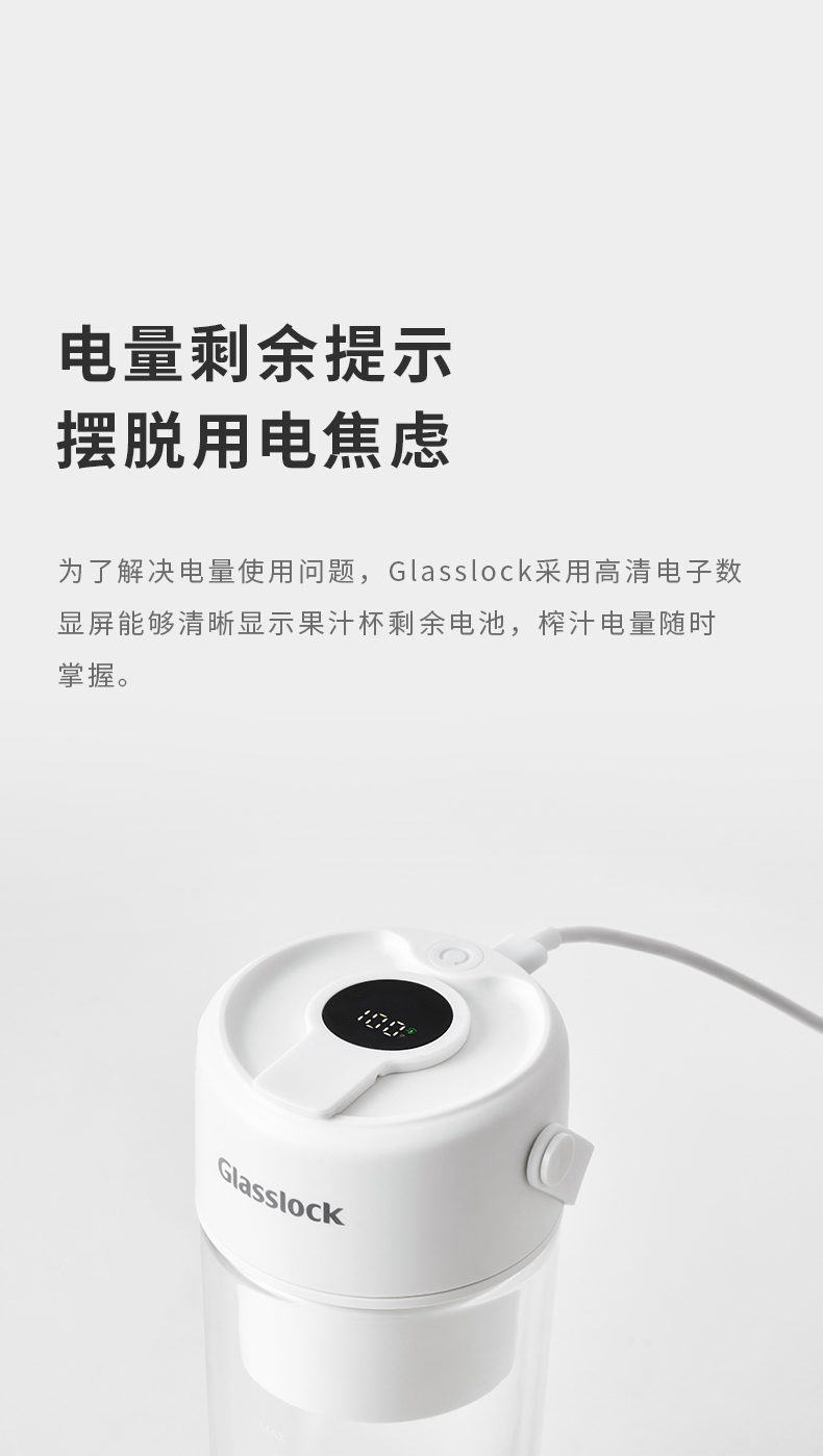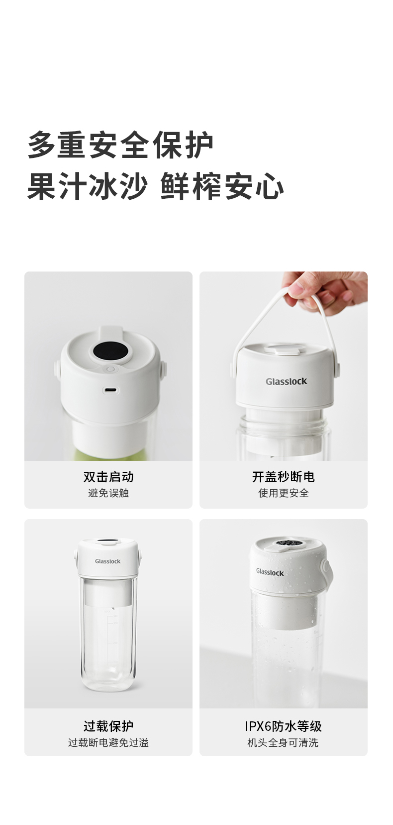 GLASSLOCK榨汁杯双层保冷便携式榨汁机无线小型可碎冰玻璃果汁机 GE-JU03WH榨汁杯