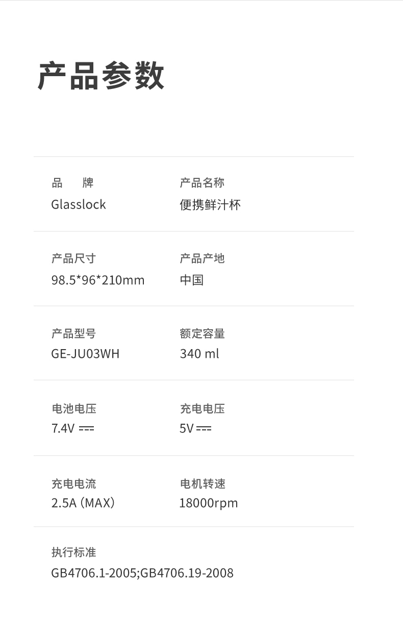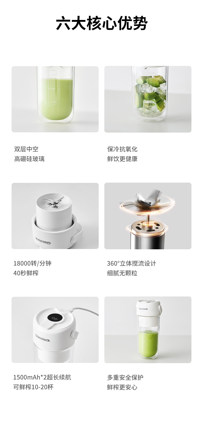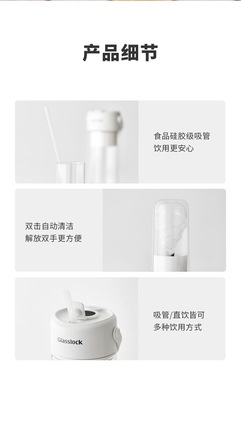 商品名称:GLASSLOCK榨汁杯双层保冷便携式榨汁机无线小型可碎冰玻璃果汁机 GE-JU03WH榨汁杯