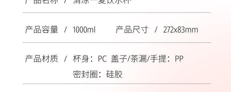 商品名称:小茶日记 清凉一夏渐变饮水杯 树莓粉 1000ml