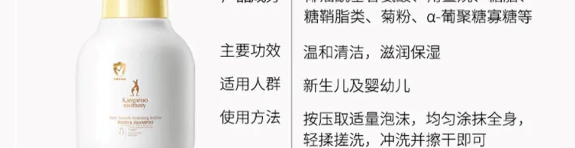 商品名称:袋鼠妈妈 宝宝舒润泡泡洗发沐浴露 300ml