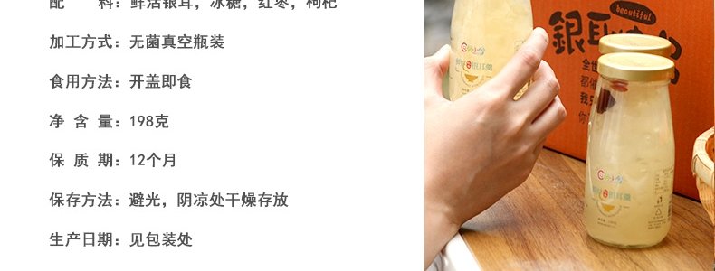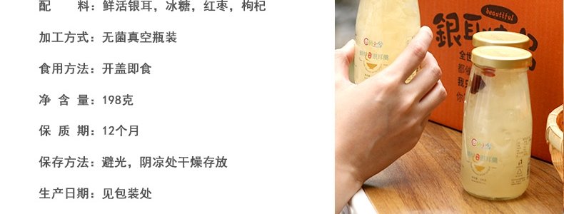商品名称:妍小兮 开盖即食银耳羹 198g*6瓶