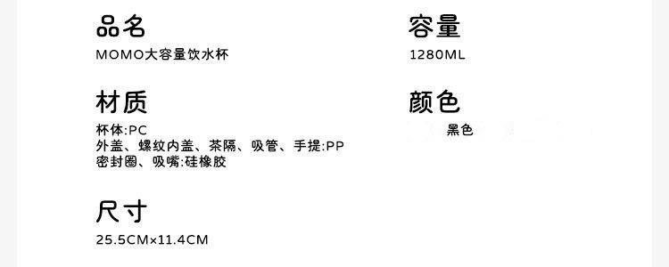 商品名称:小茶日记 momo大容量吸管杯 黑色 1280ml