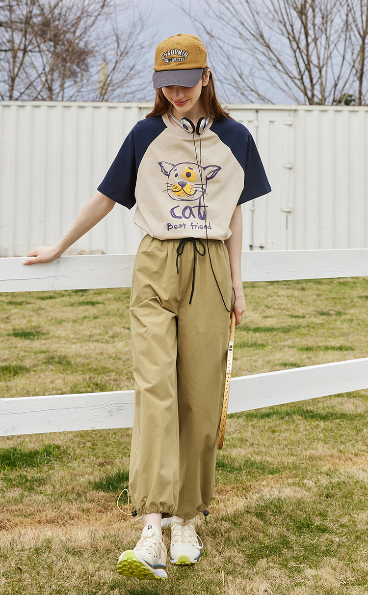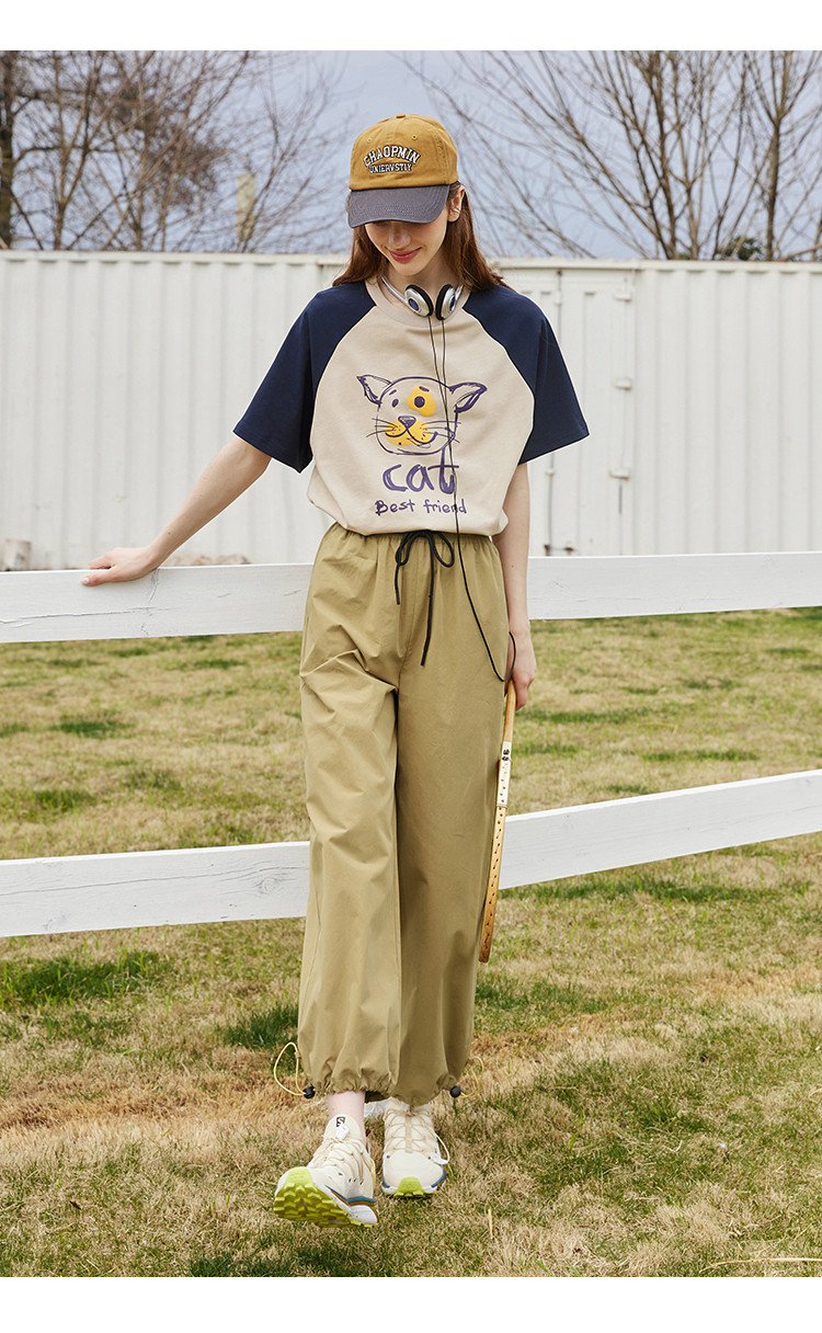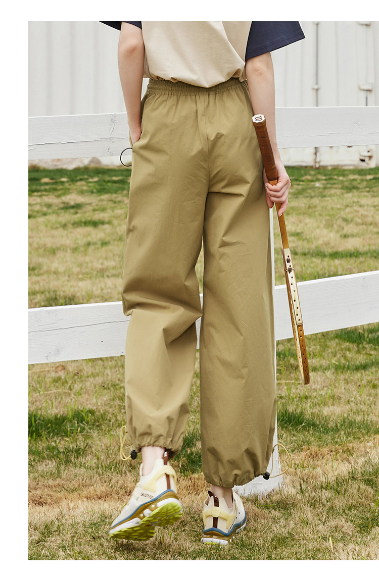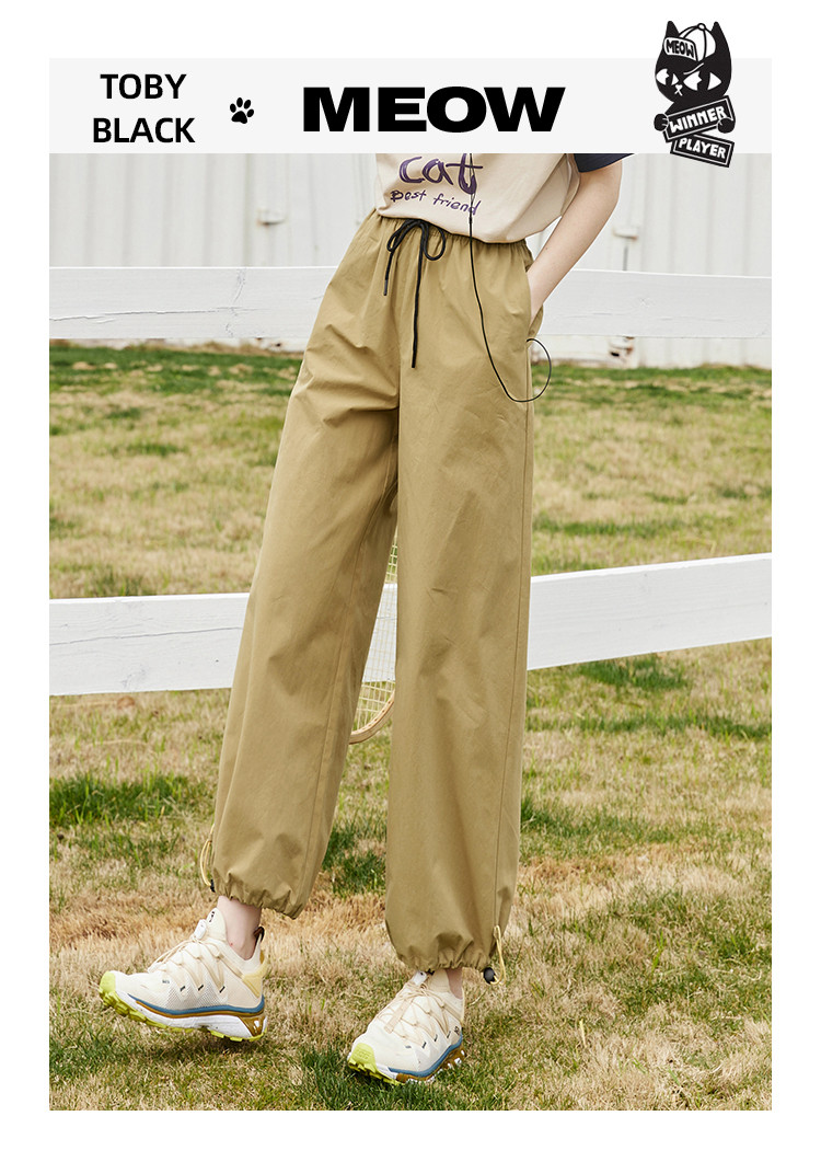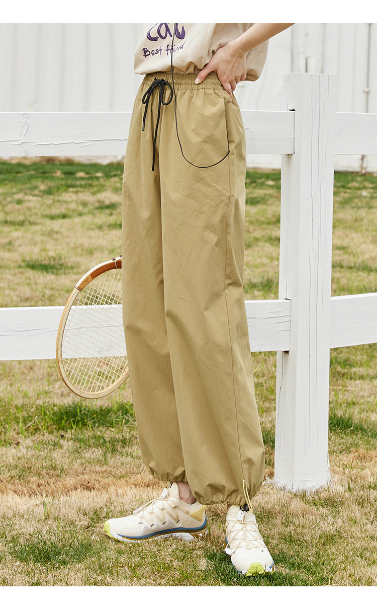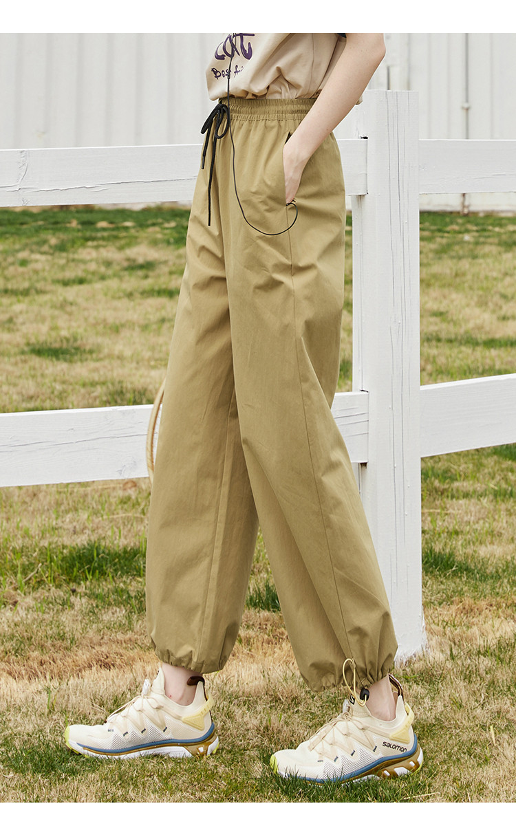 轻户外纯色收腰简约设计束脚裤夏季百搭九分女式休闲裤 472989