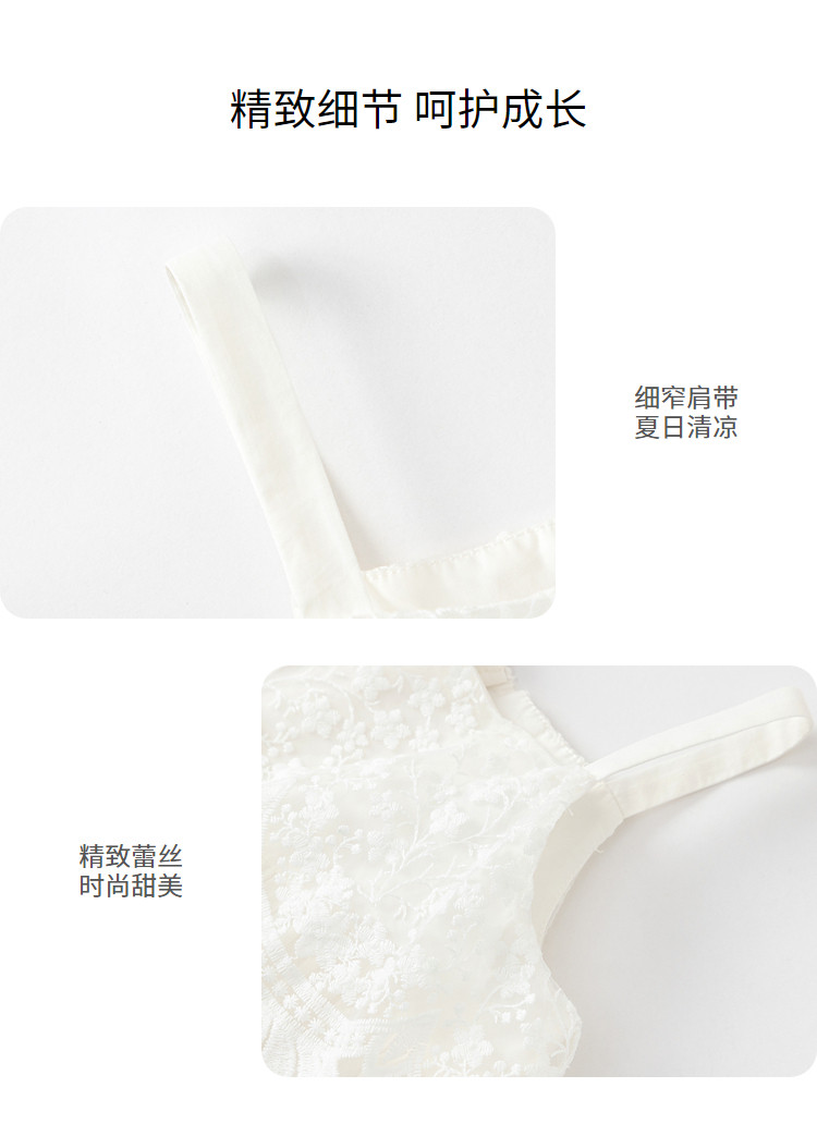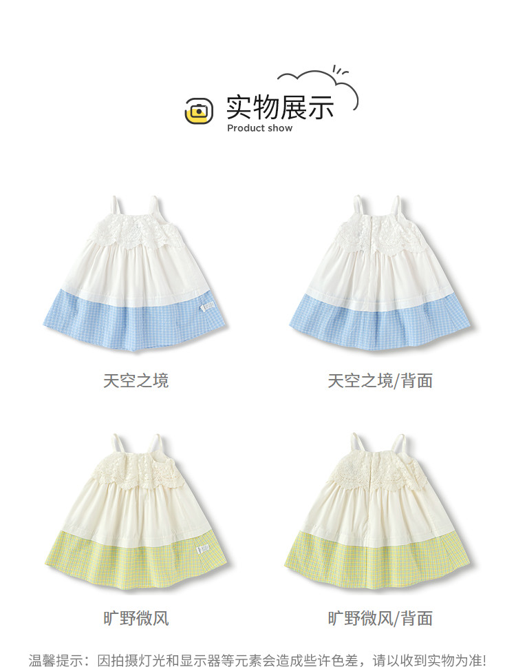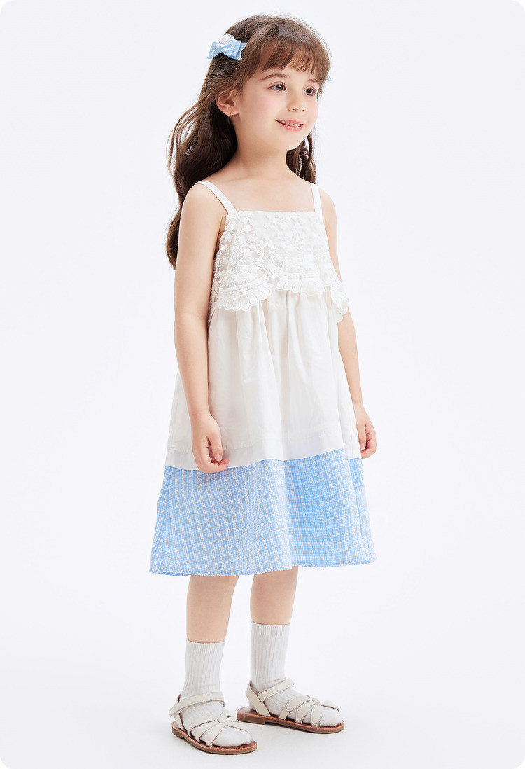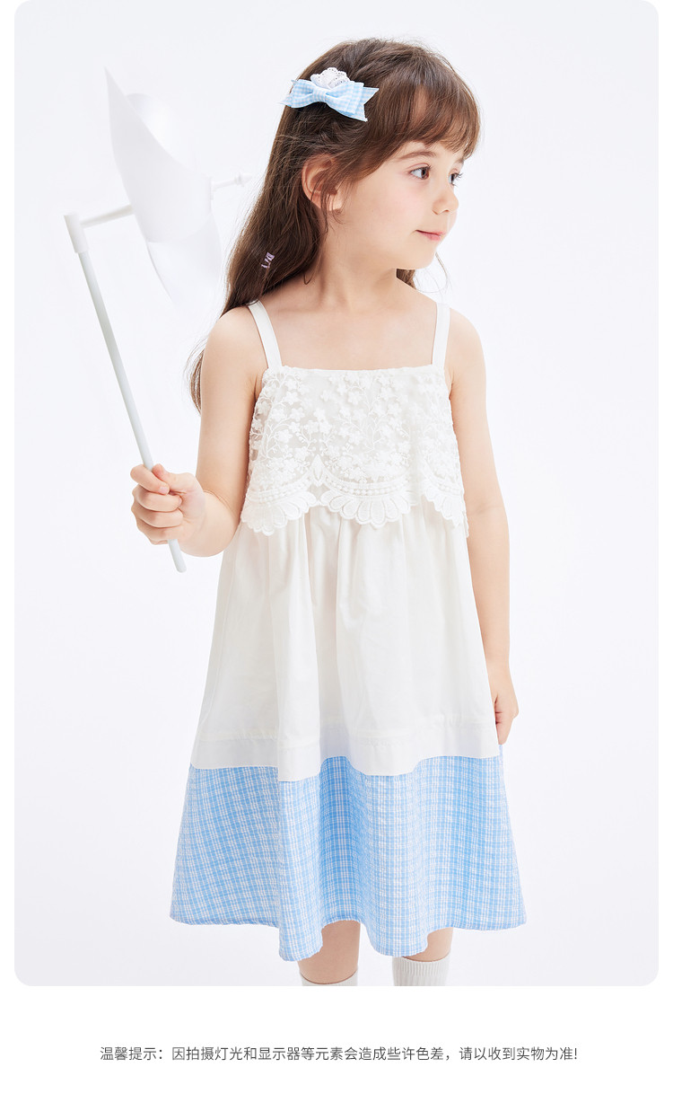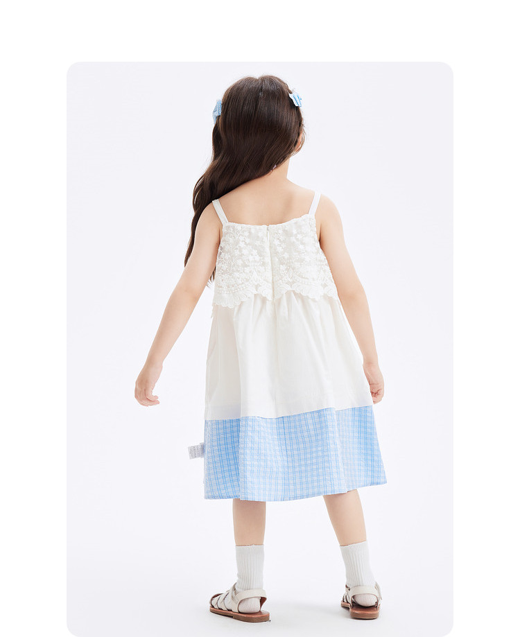 商品名称:凉爽透气蕾丝格纹拼接儿童裙子夏装女童连衣裙时尚吊带裙高级感 912133