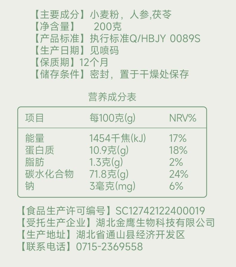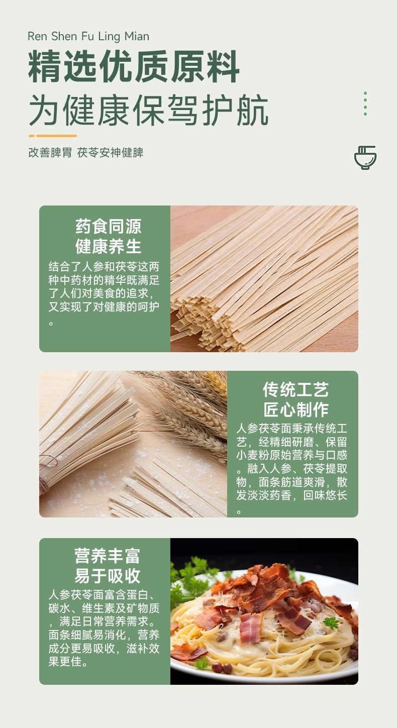 商品名称:5包 人参茯苓面早餐代餐面条挂面