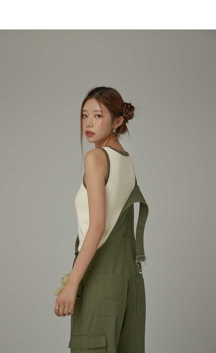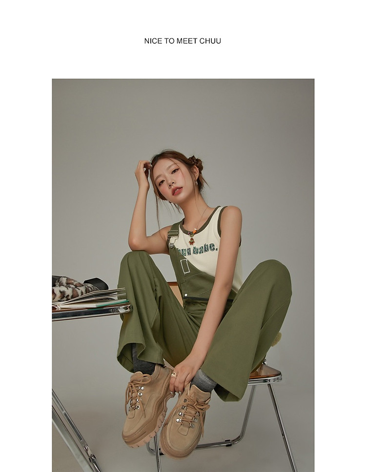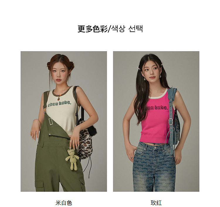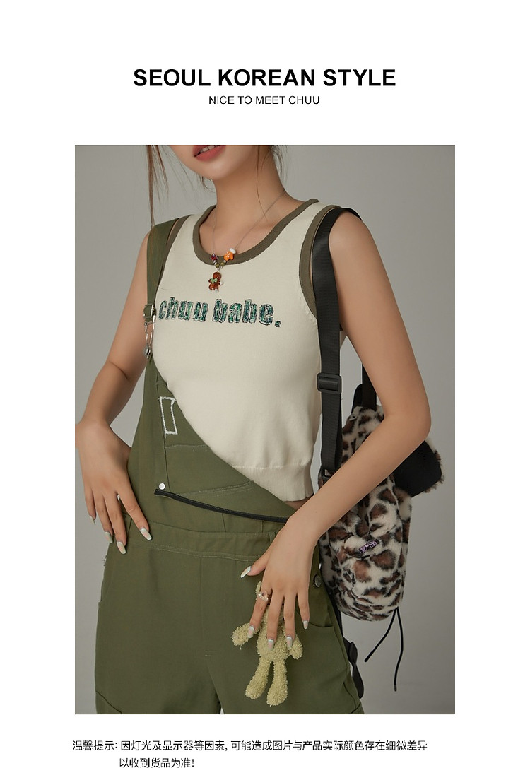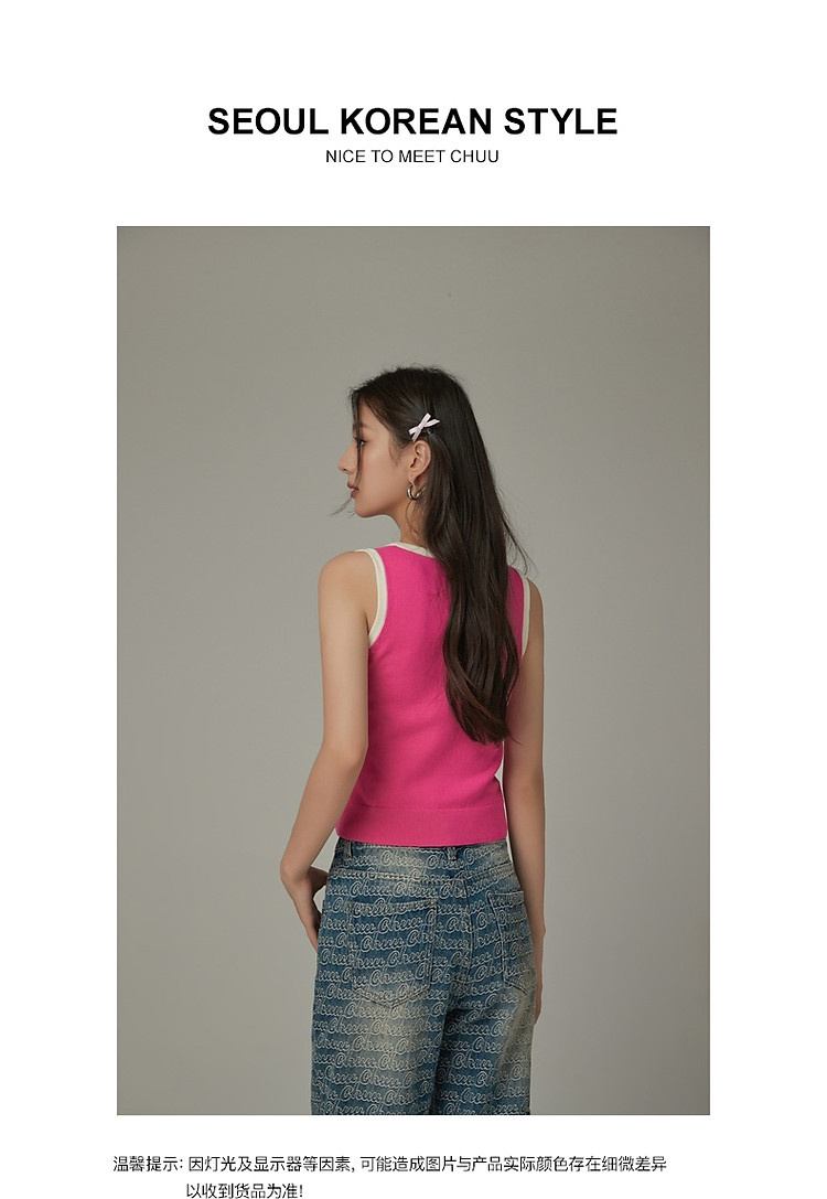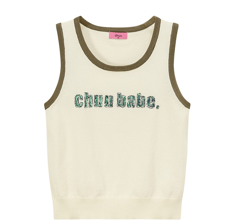 商品名称:CHUU字母绣花小背心女春秋学院风撞色修身无袖上衣 682259