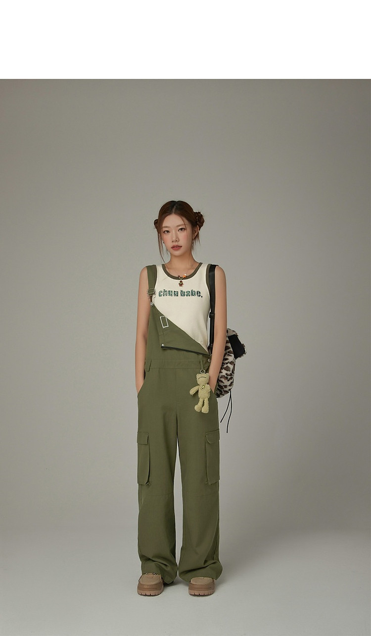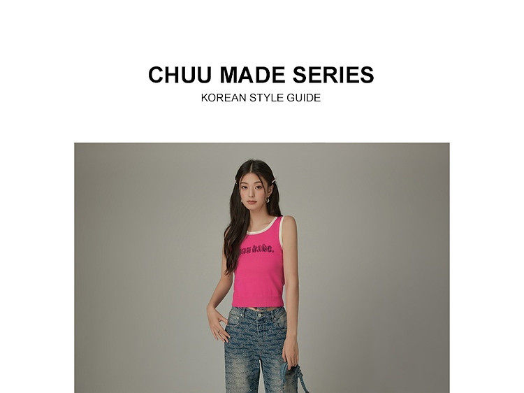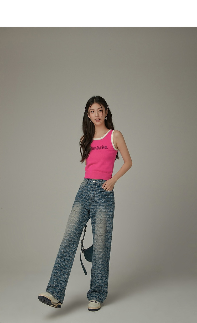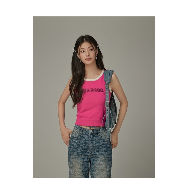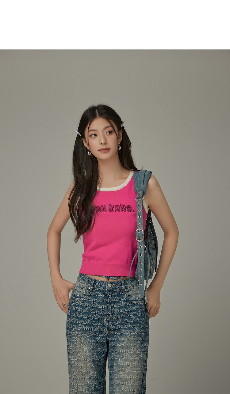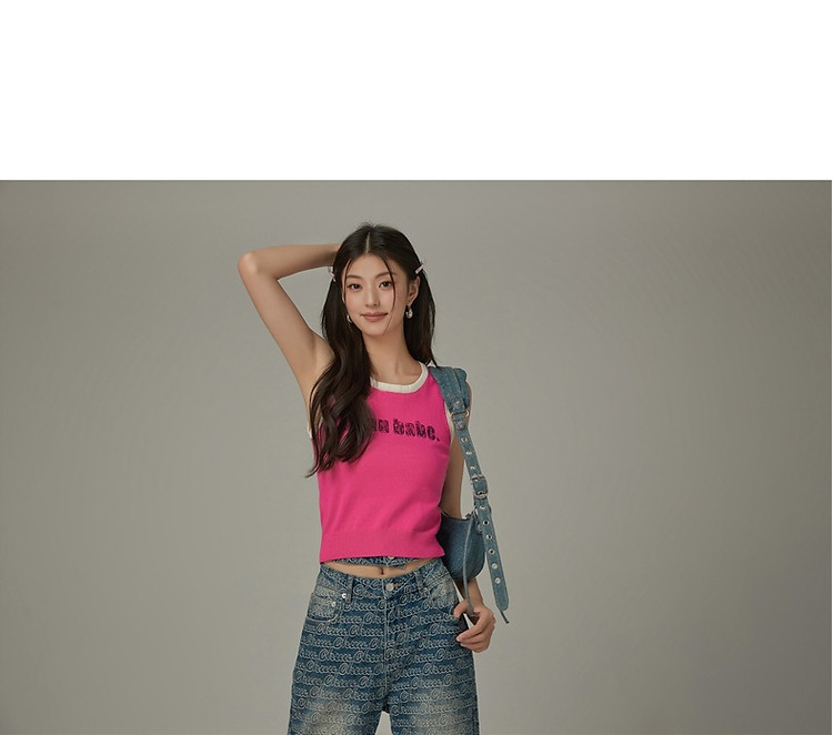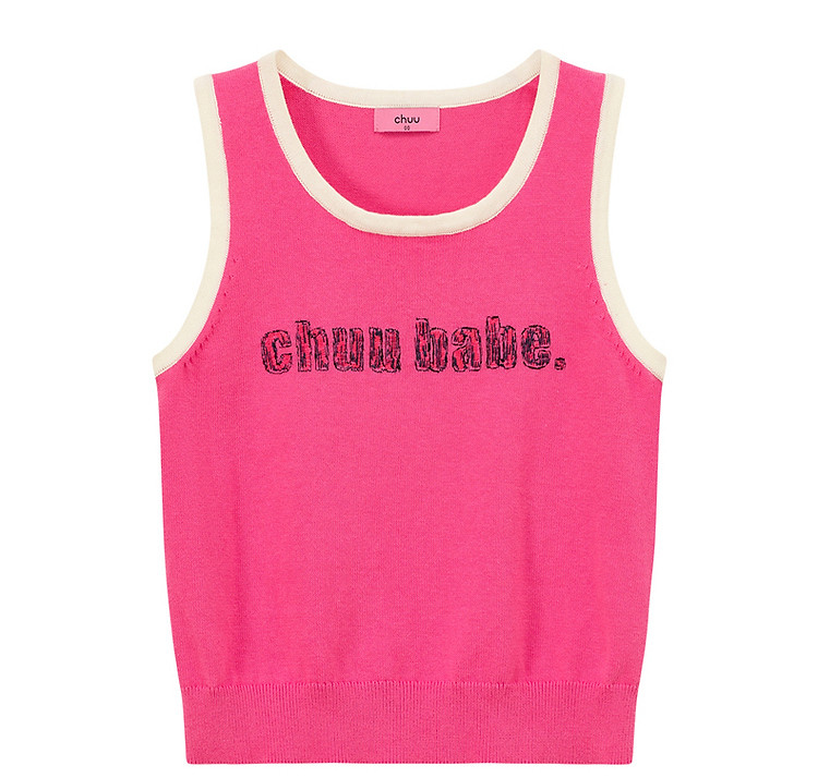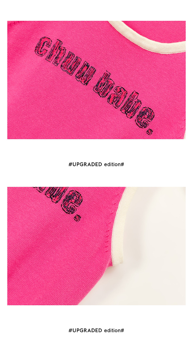 CHUU字母绣花小背心女春秋学院风撞色修身无袖上衣 682259