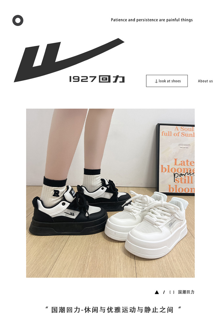 商品名称:【镂空网布】25夏季款女鞋厚底增高板鞋女拼色小白鞋女休闲鞋女 564372