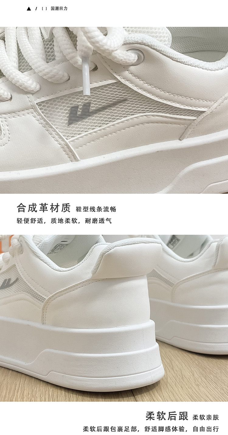 春夏薄款透气小白鞋女百搭时尚板鞋厚底增高鞋轻便舒适运动休闲鞋 981975