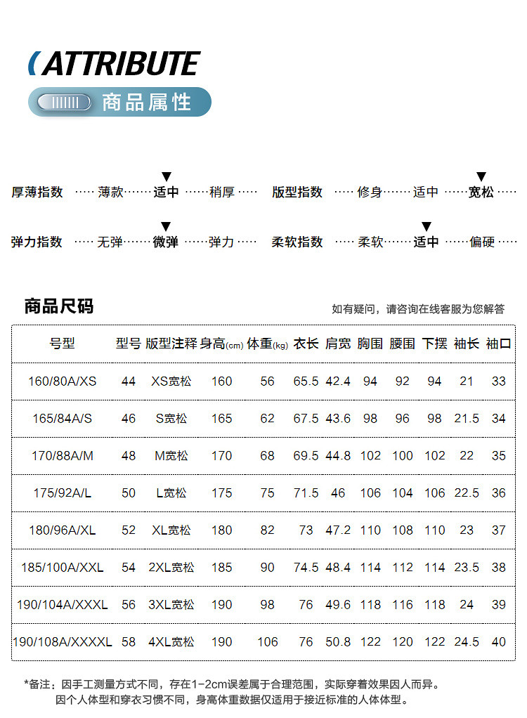 尺码 衣长(cm) 肩宽(cm) 腰围(cm) 袖长(cm) 胸围(cm) 下摆围(cm) 号型