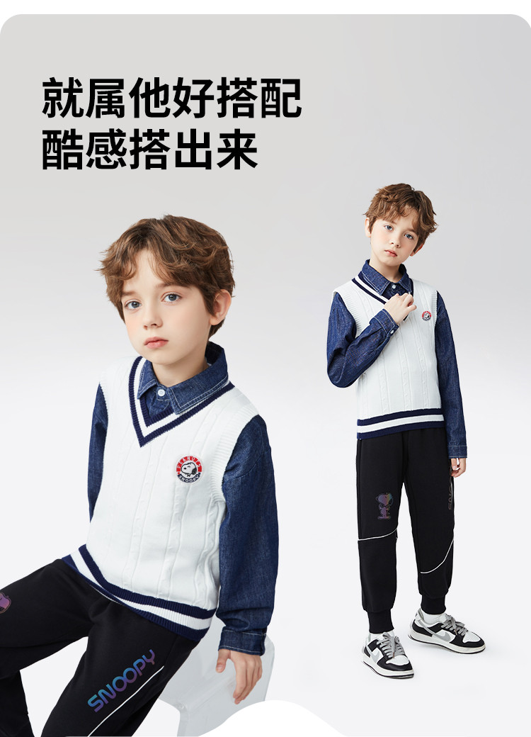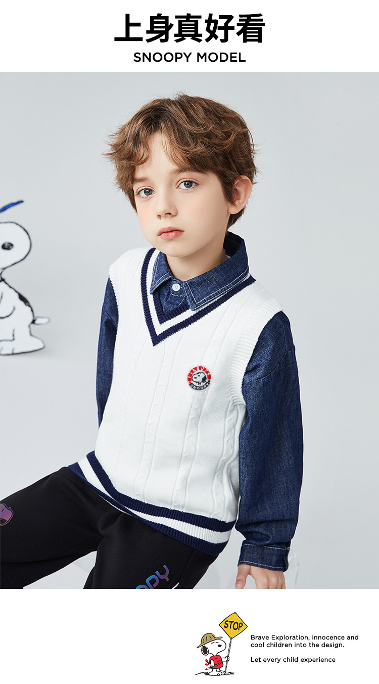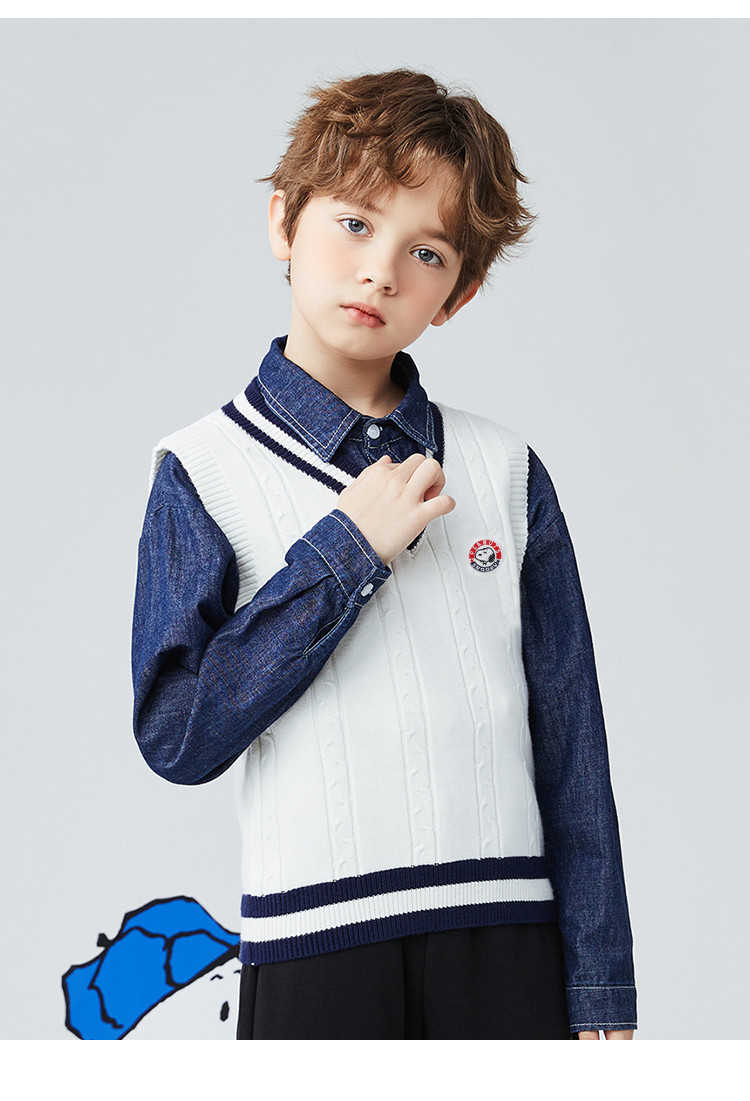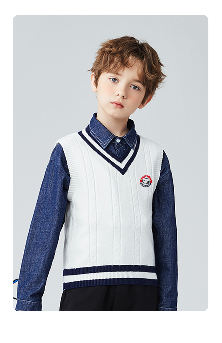 商品名称:【学院风针织V领背心】儿童春秋季外搭薄马甲毛衣背心男童背心 423704