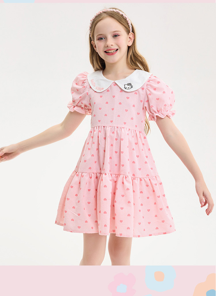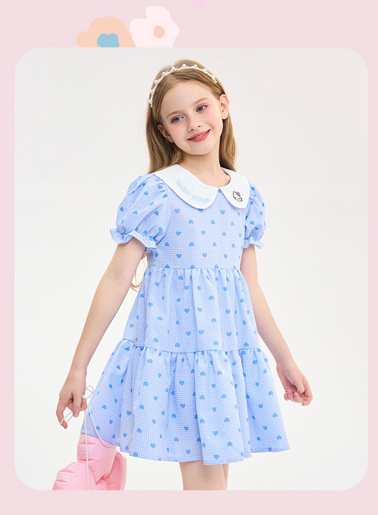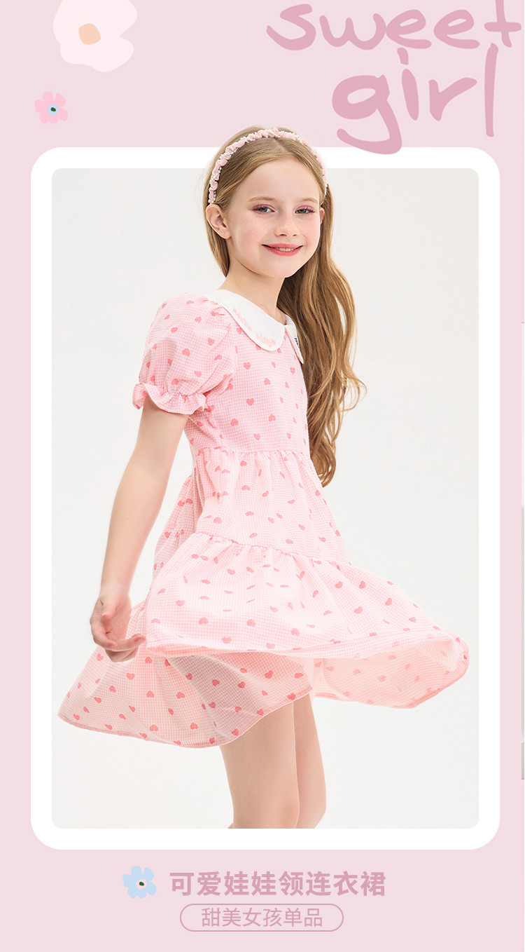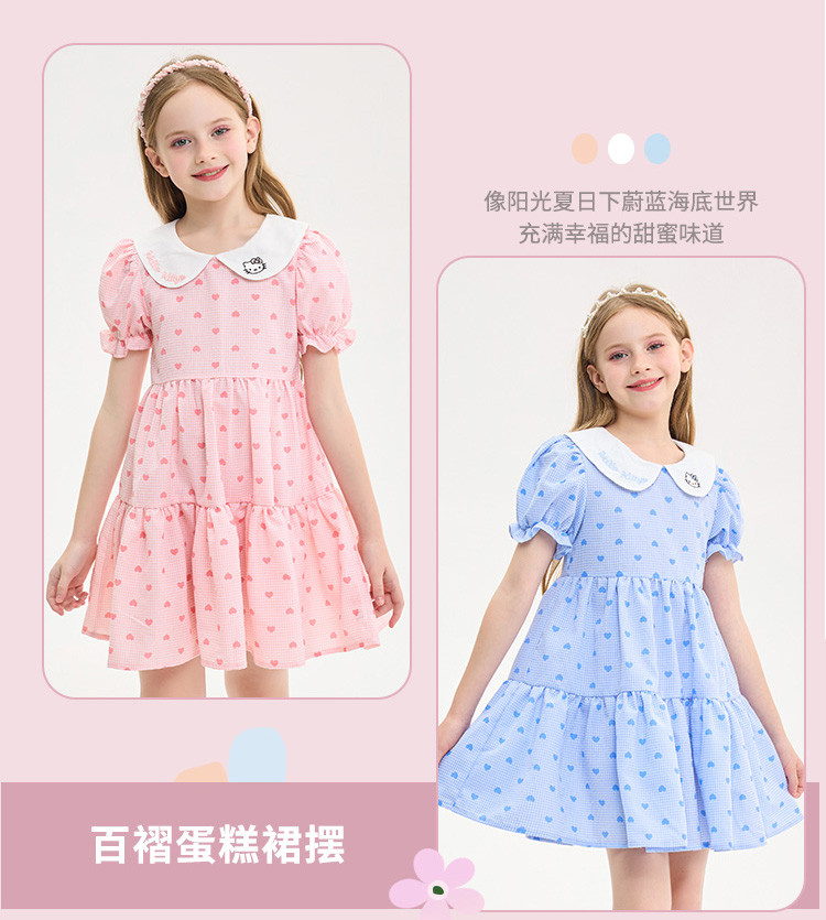 夏季小清新连衣裙儿童学生甜美百褶蛋糕裙女孩舒适透气洋气裙子 110017