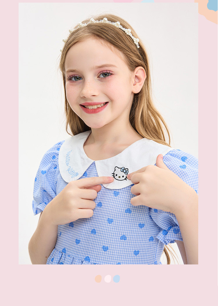 商品名称:夏季小清新连衣裙儿童学生甜美百褶蛋糕裙女孩舒适透气洋气裙子 110017