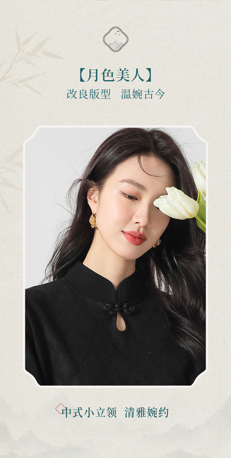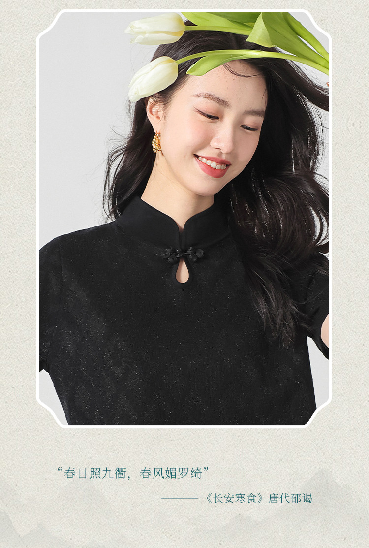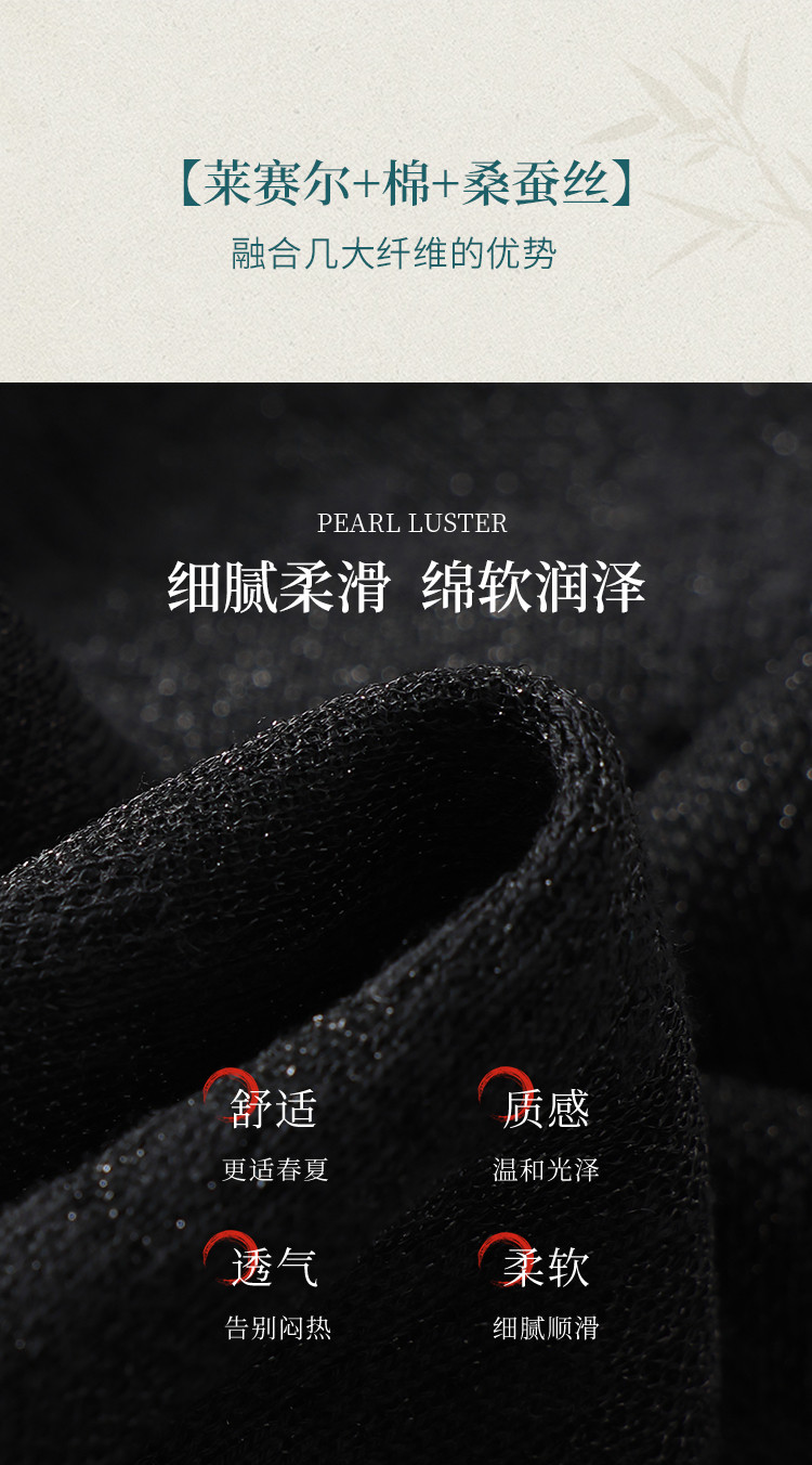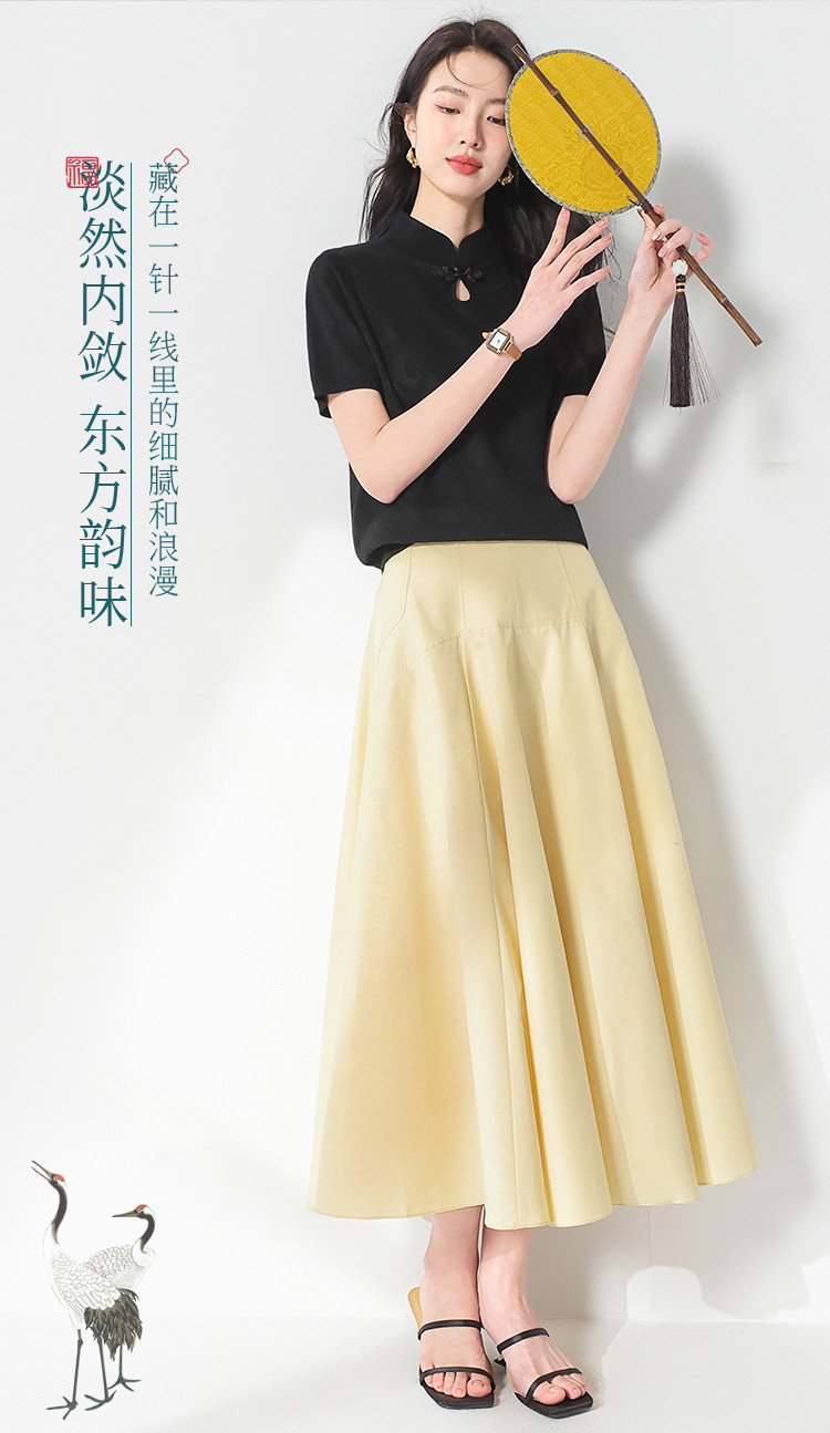 国风~轻薄透气含桑蚕丝立领打底衫短袖T恤针织衫女夏妈妈装上衣 268691