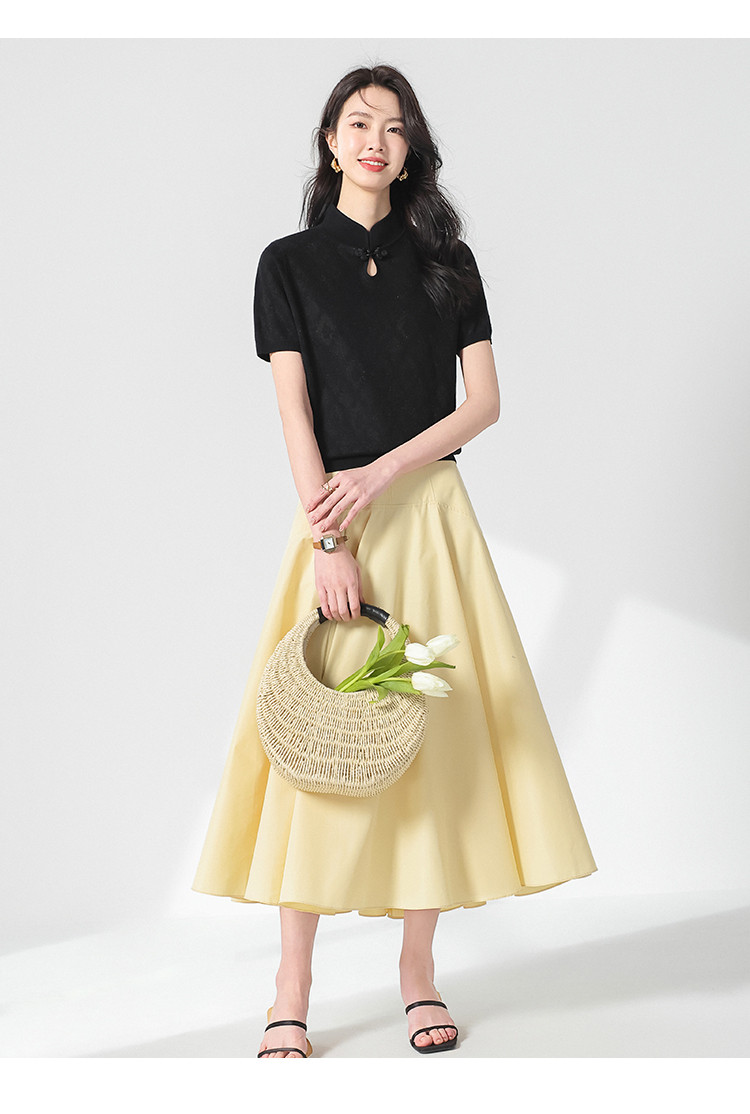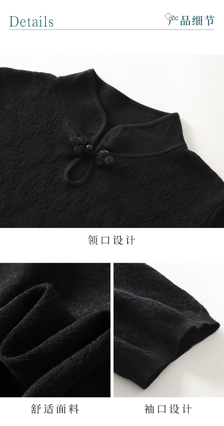 商品名称:国风~轻薄透气含桑蚕丝立领打底衫短袖T恤针织衫女夏妈妈装上衣 268691
