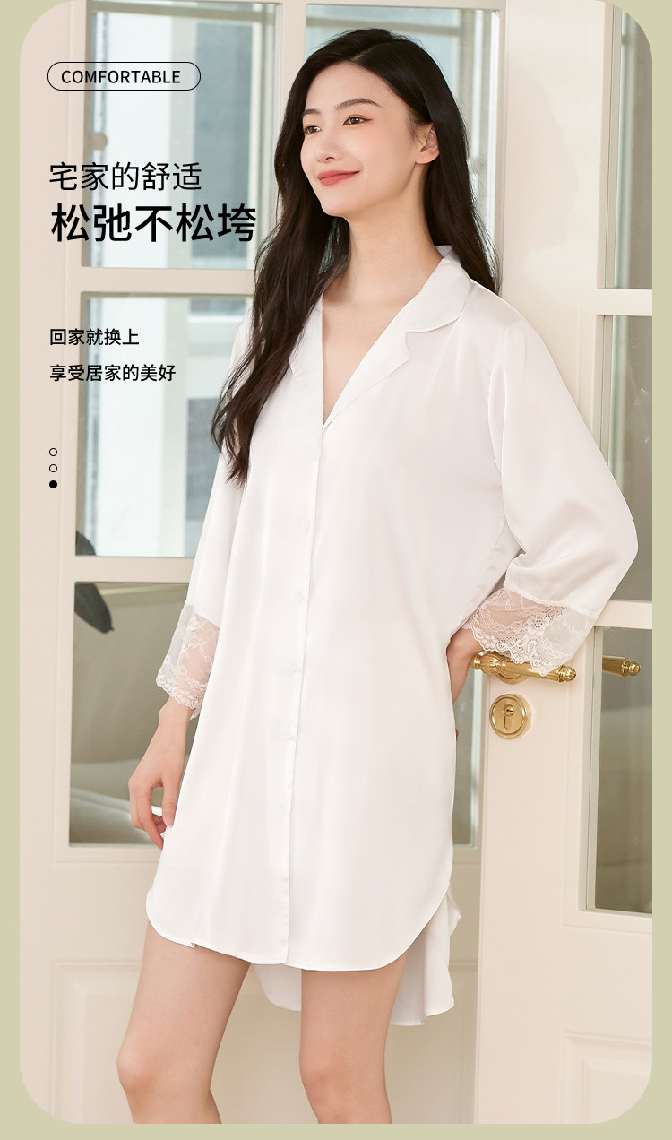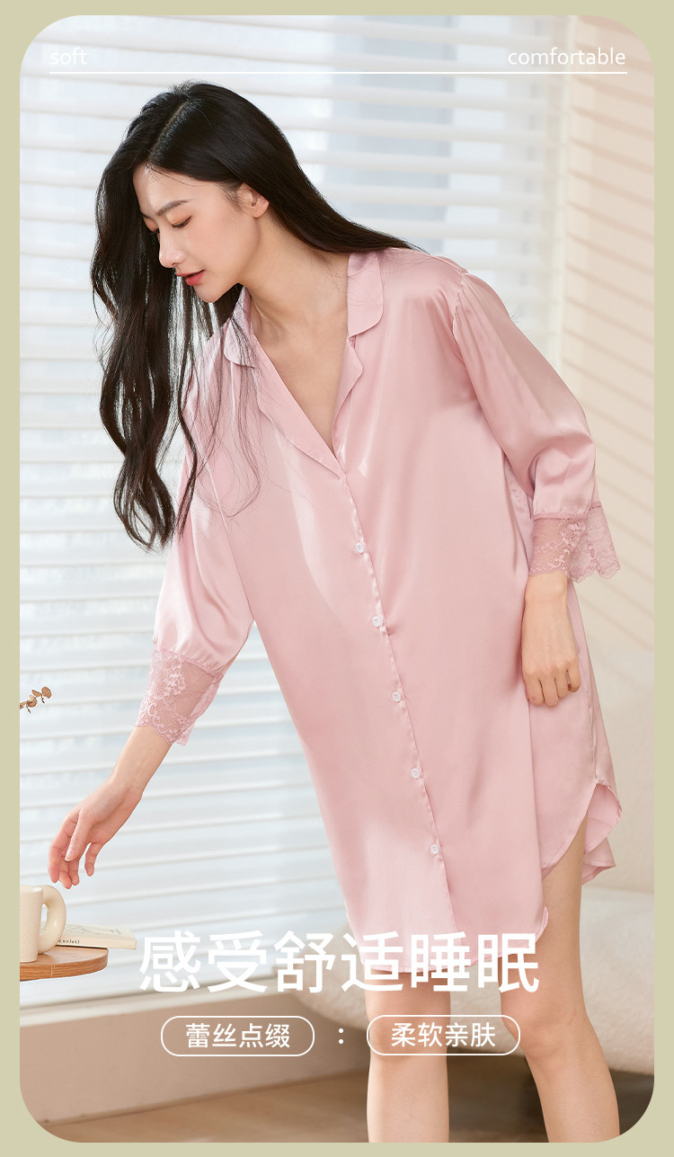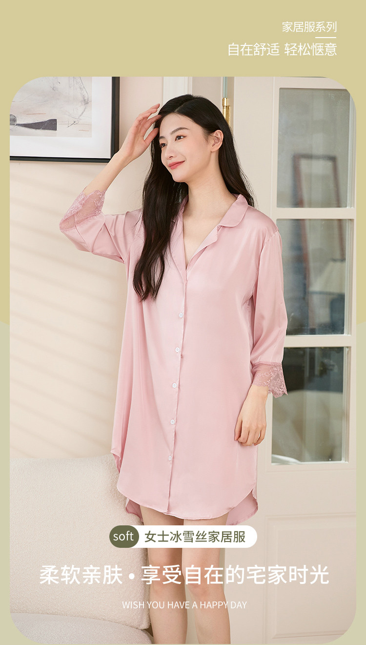 商品名称:【冰雪丝】顺滑垂感亲肤体验休闲风翻领女士睡裙清爽舒适 451659
