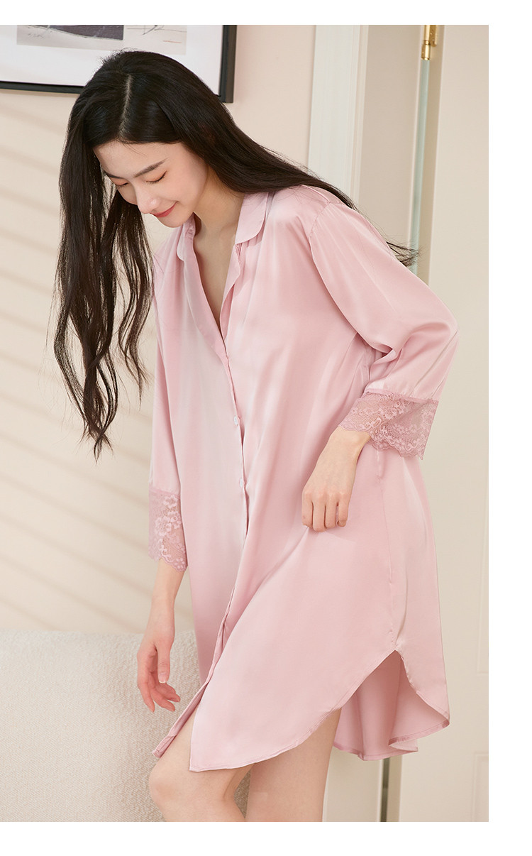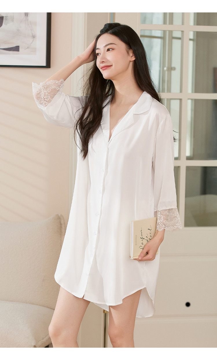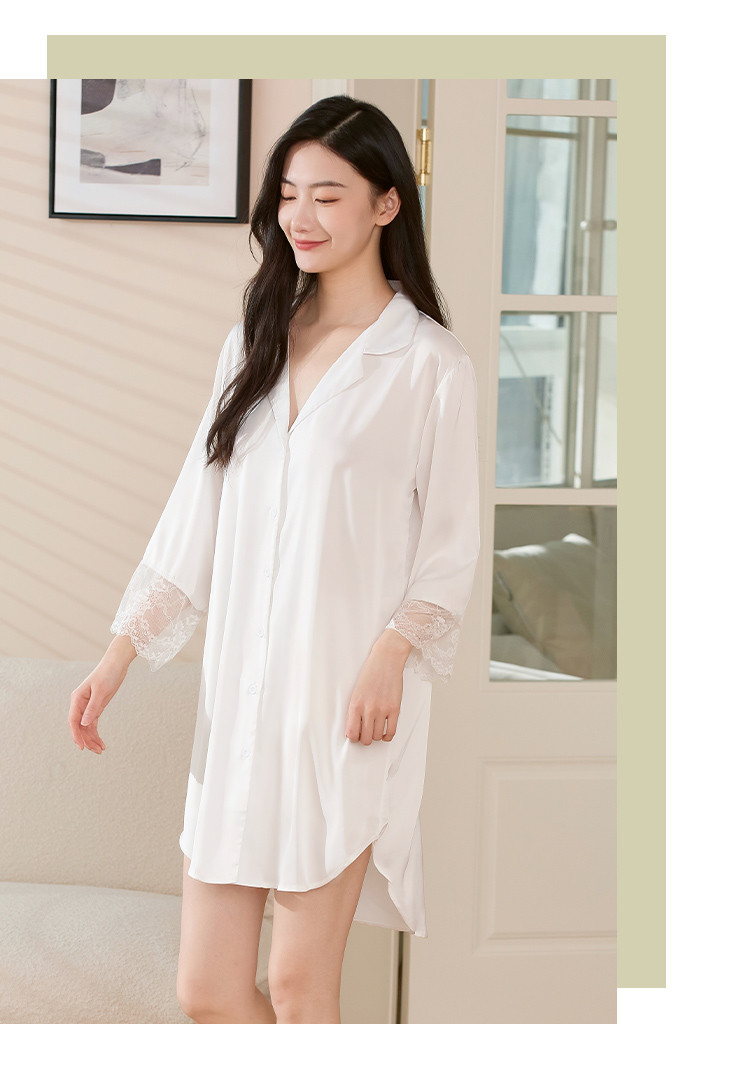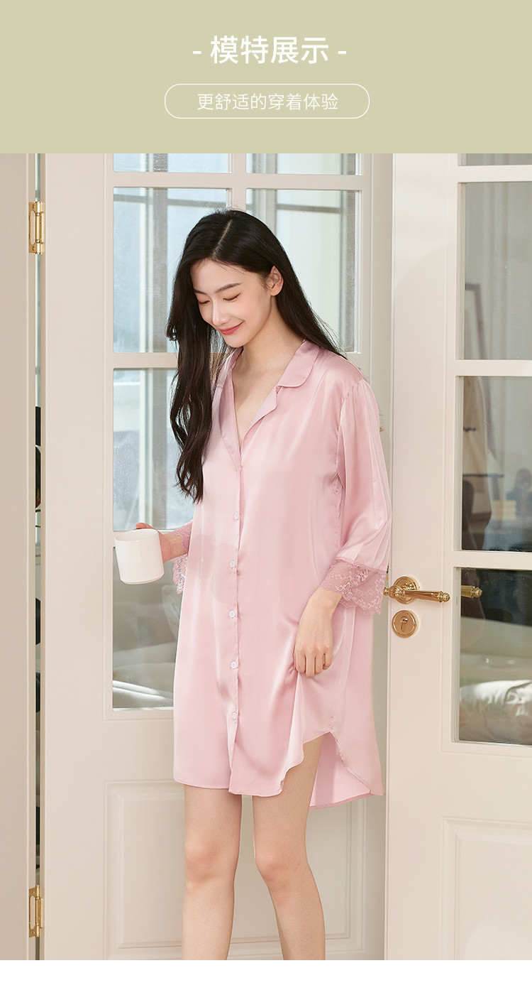 商品名称:【冰雪丝】顺滑垂感亲肤体验休闲风翻领女士睡裙清爽舒适 451659
