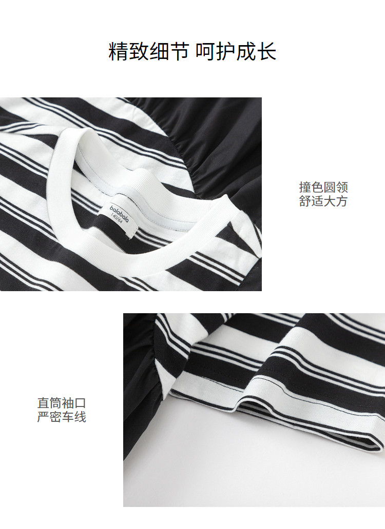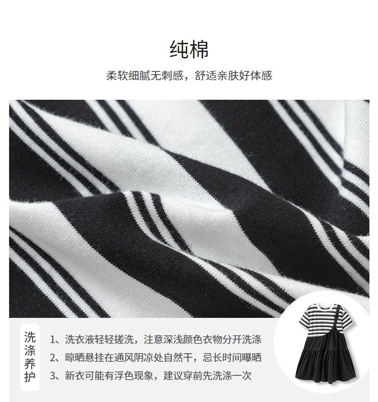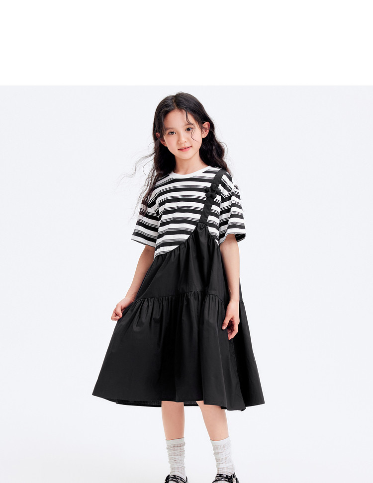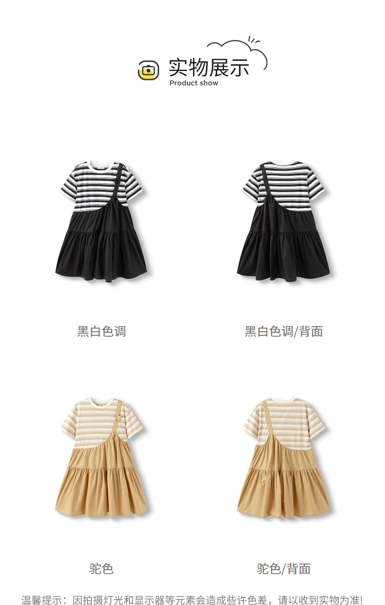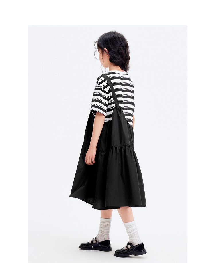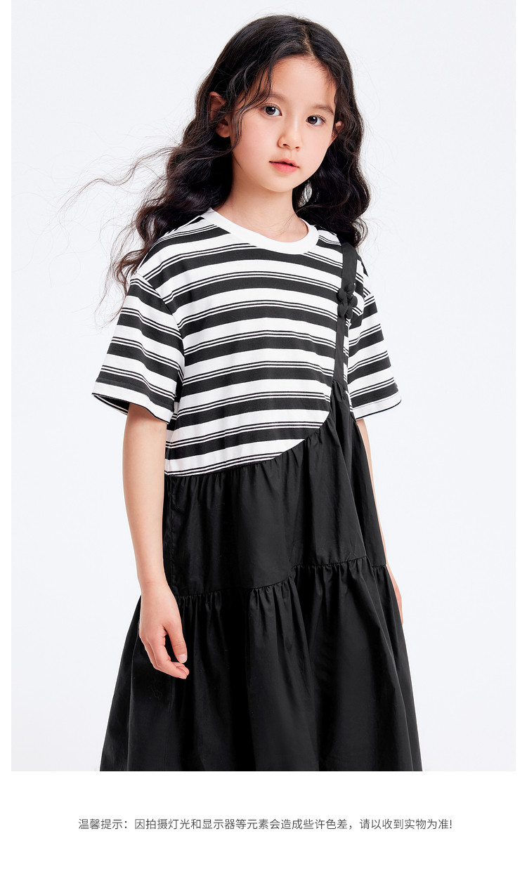 商品名称:学院风条纹拼接假两件女童连衣裙夏薄款大童裙子T恤裙甜美高级感 985861