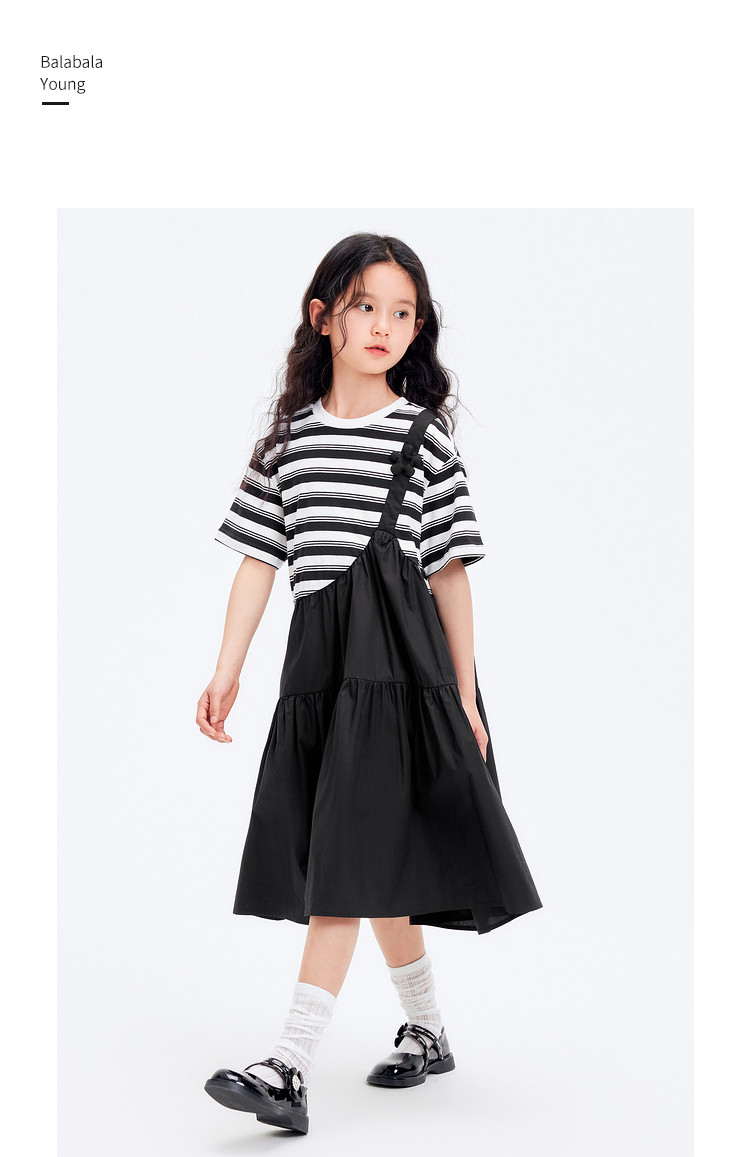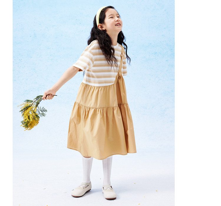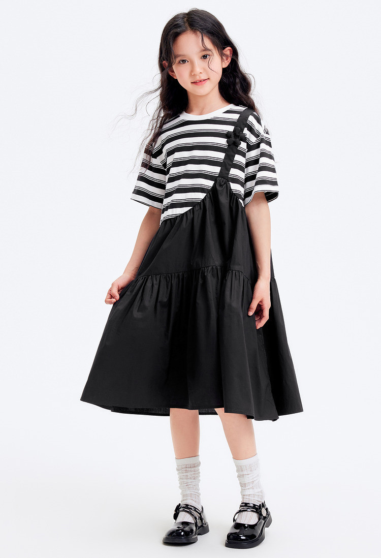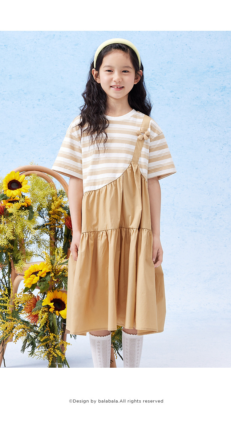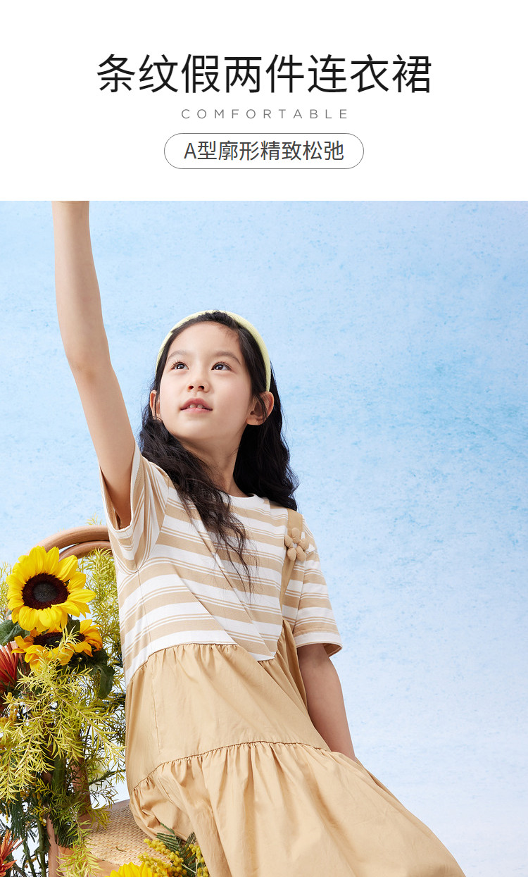 商品名称:学院风条纹拼接假两件女童连衣裙夏薄款大童裙子T恤裙甜美高级感 985861