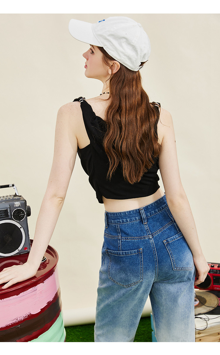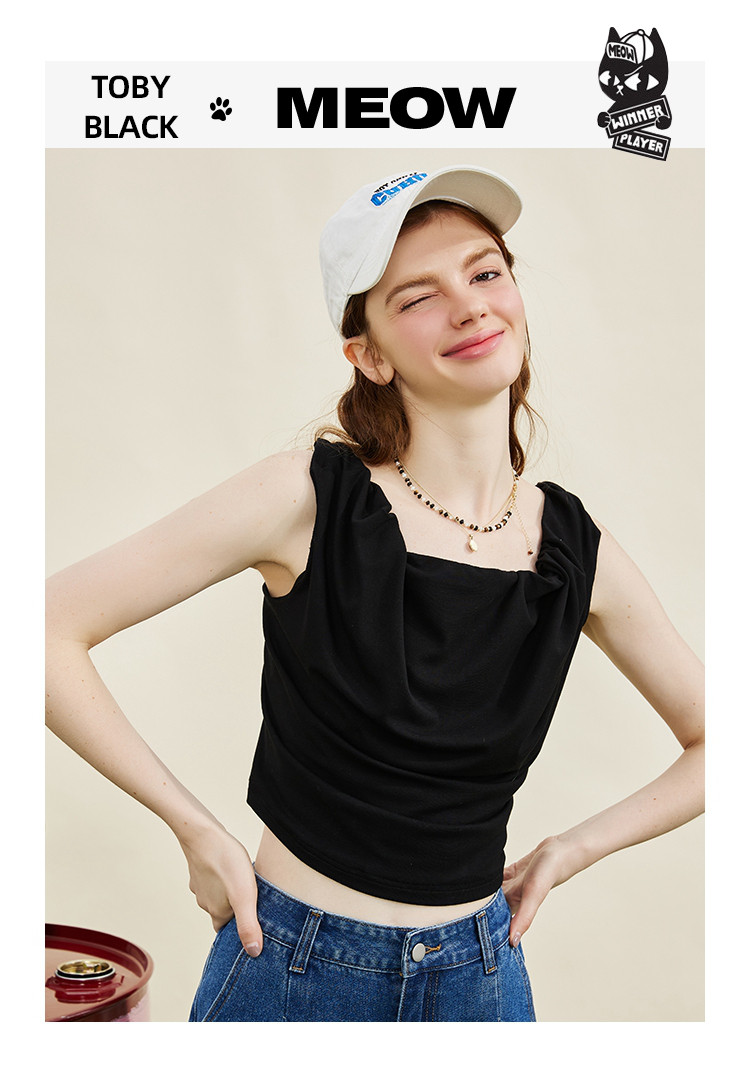 商品名称:设计师款纽皱个性短款背心夏季纯色休闲小众吊带女式T恤 606749