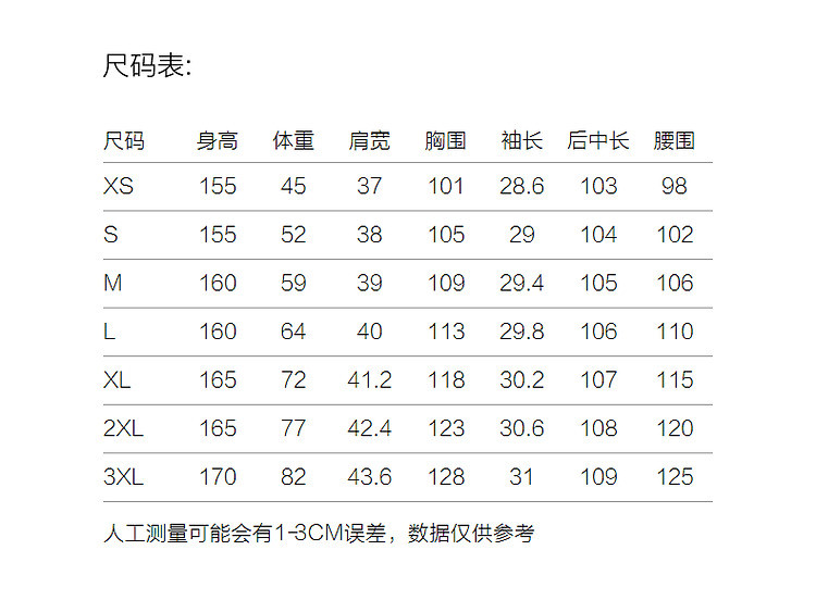 | 尺码 | 裙长(cm) | 肩宽(cm) | 腰围(cm) | 袖长(cm) | 胸围(cm) | 号型 |