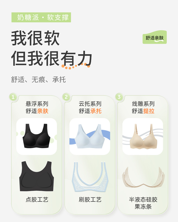 商品名称:【无钢圈软支撑】悬浮软支胸罩女隐形内衣一片式舒适无痕文胸超薄 272782