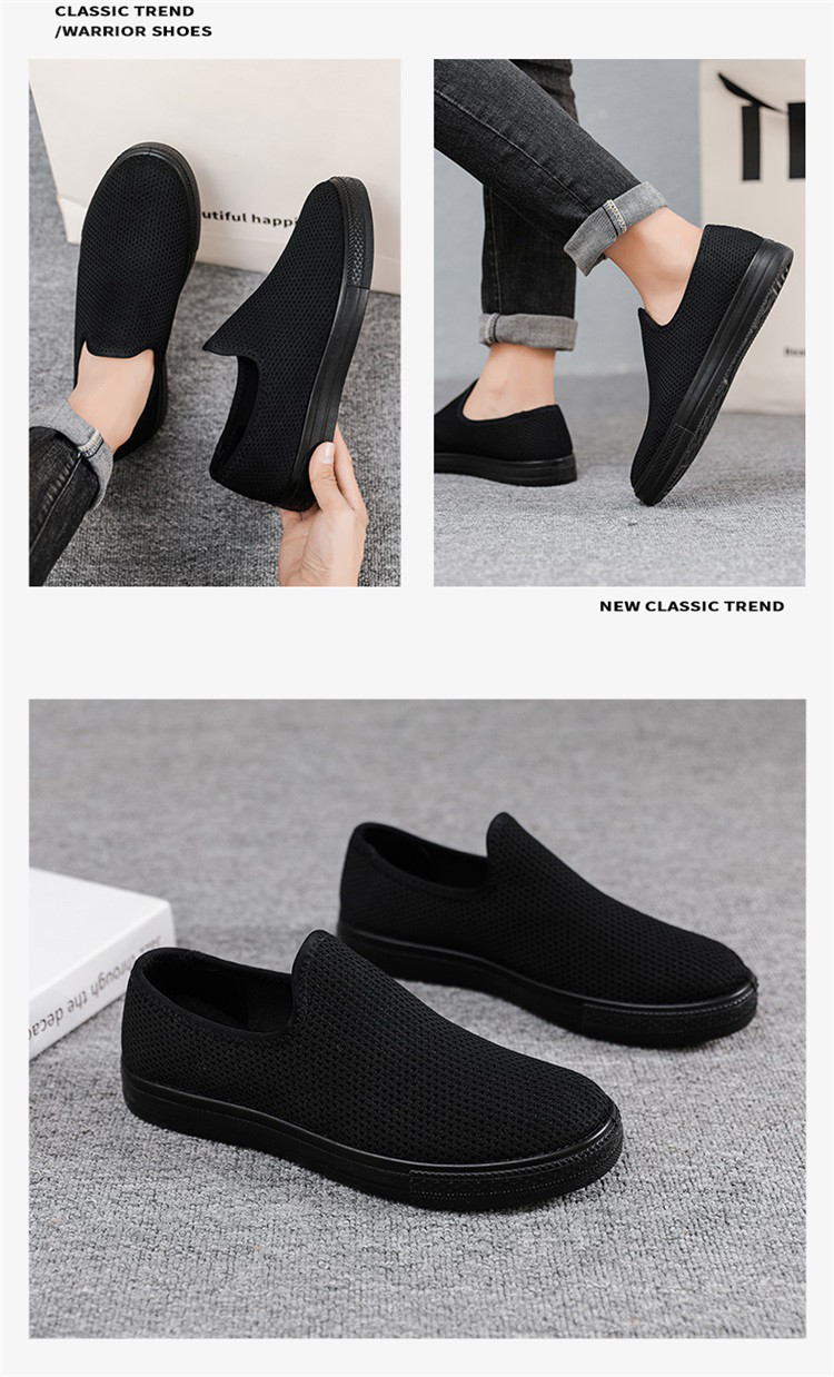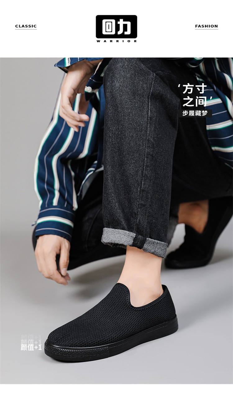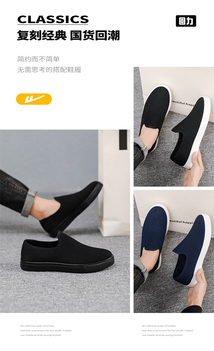 商品名称:帆布鞋男春季透气一脚蹬舒适懒人男士休闲鞋黑色软底老北京布鞋 470981