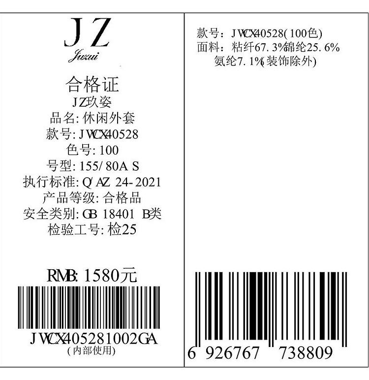 商品名称:商场同款JZ玖姿轻户外抽绳字母短袖外套女夏季JWCX40528 461772