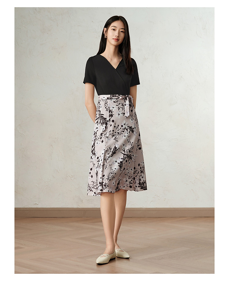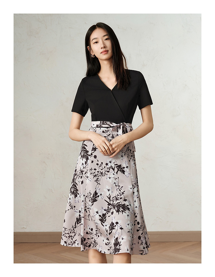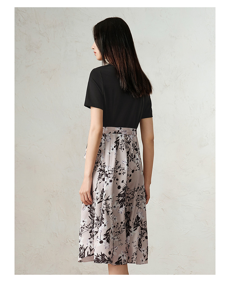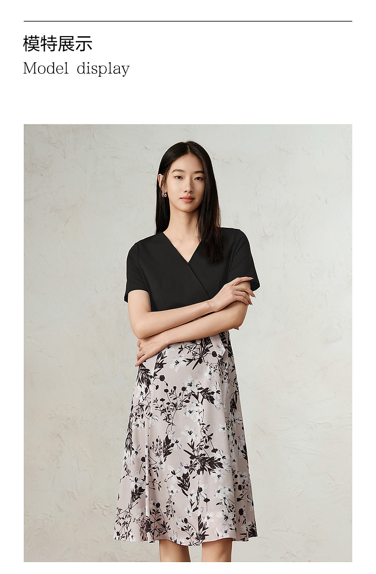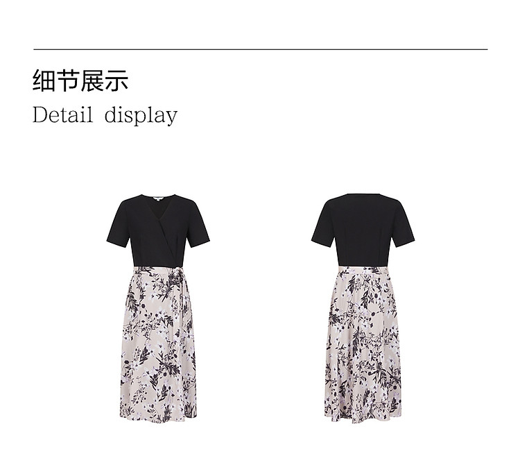 商品名称:玖姿旗下安娜蔻系列气质针织雪纺拼接撞色假两件连衣裙女春季 990540