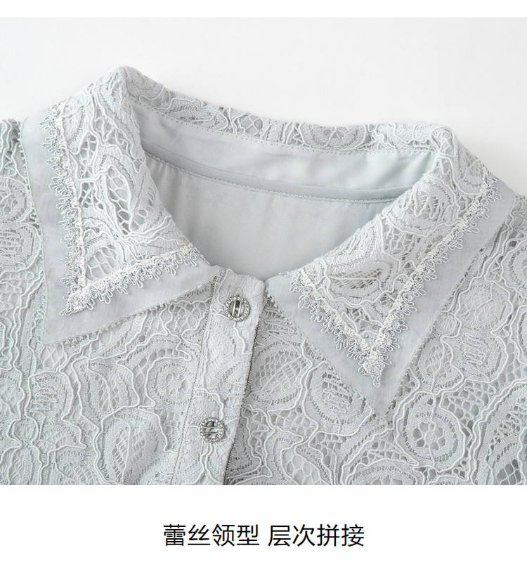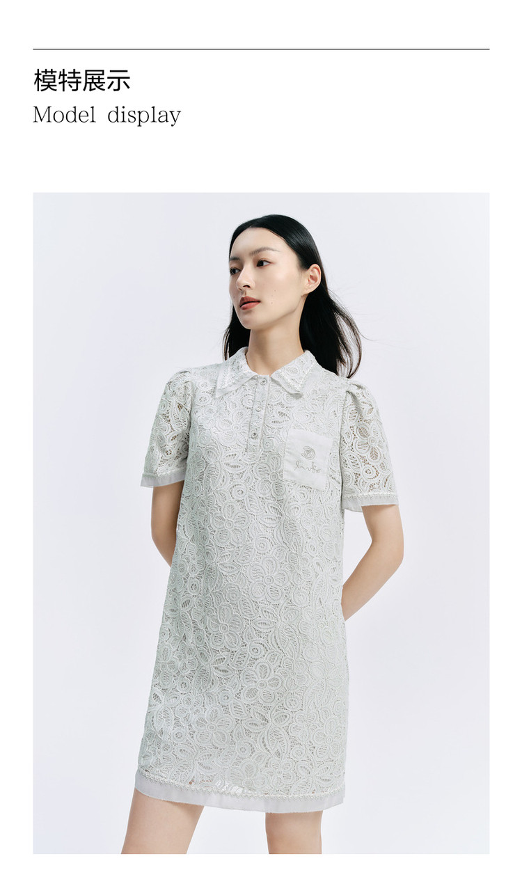 商品名称:【薄荷曼波】玖姿旗下安娜蔻系列轻熟衬衫领直筒蕾丝中长连衣裙女 784524