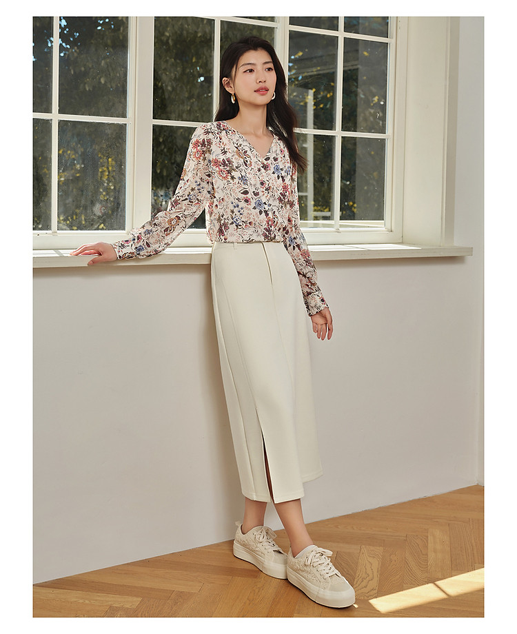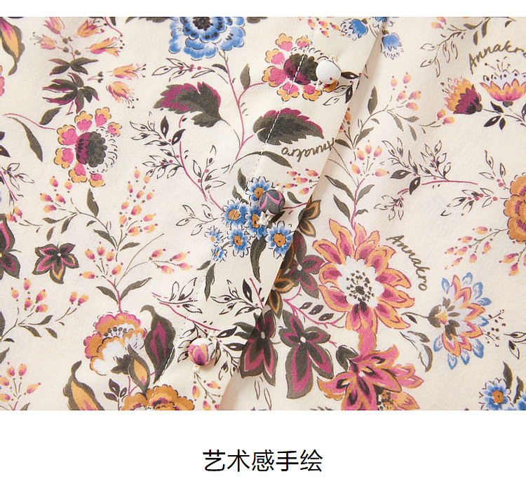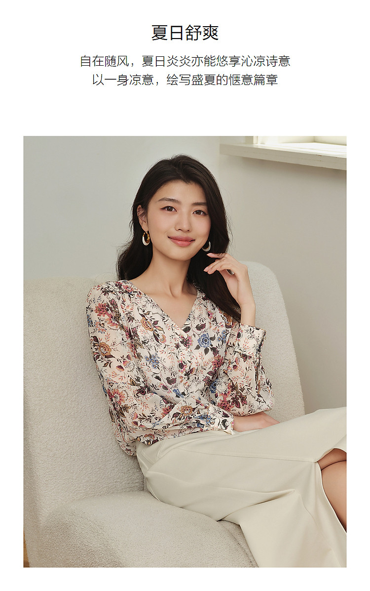 商品名称:玖姿旗下安娜蔻系列真丝艺术感印花V领上衣衬衫女 306956