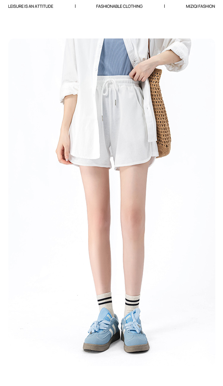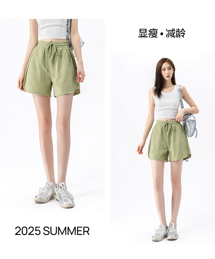 商品名称:米子旗夏季高腰纯色女式休闲裤宽松显瘦运动风薄款短裤阔腿裤 839706