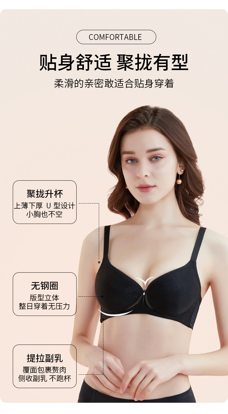 商品名称:【小胸聚拢】文胸女内衣无钢圈光面无痕收副乳防下垂夏薄款调整型 956107