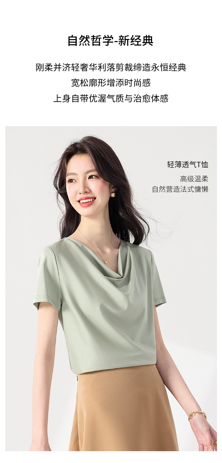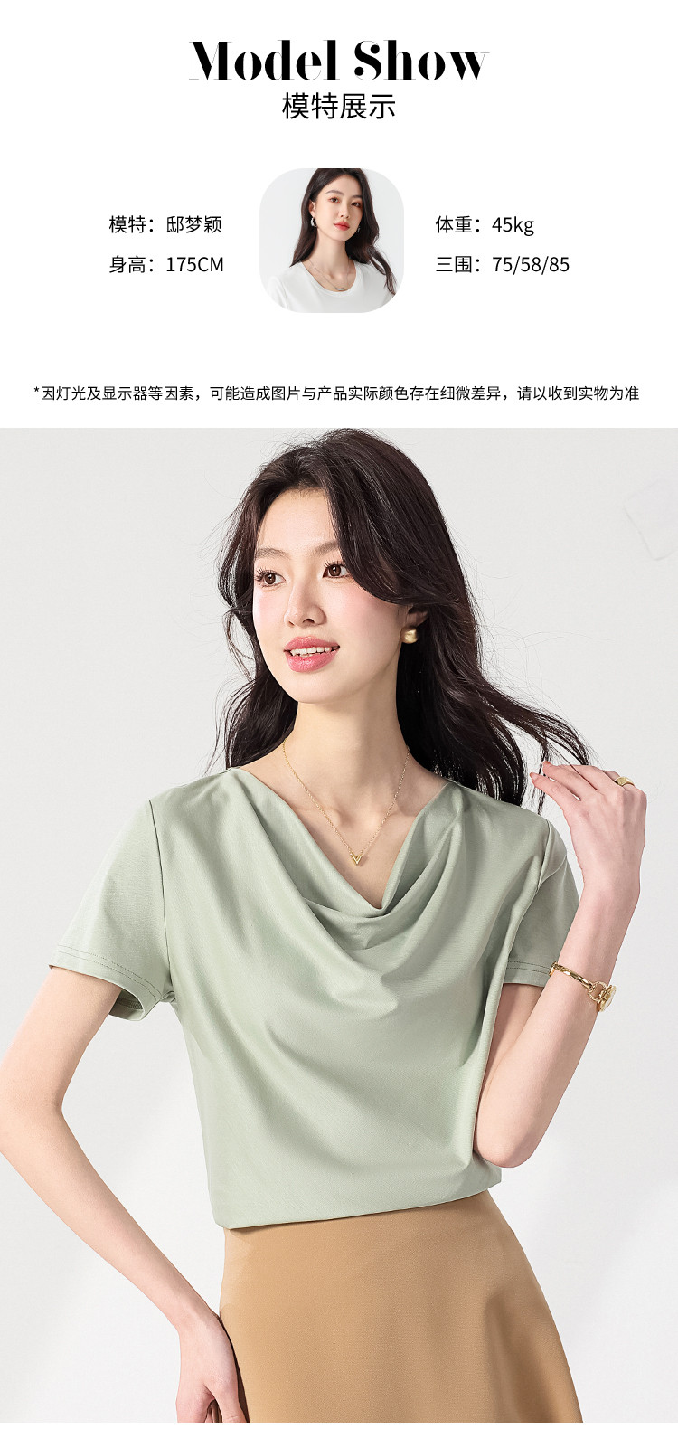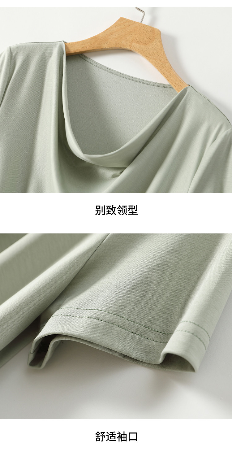 商品名称:夏季轻薄透气纯色短袖含桑蚕丝针织打底衫T恤空调衫 460691
