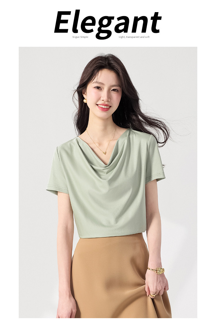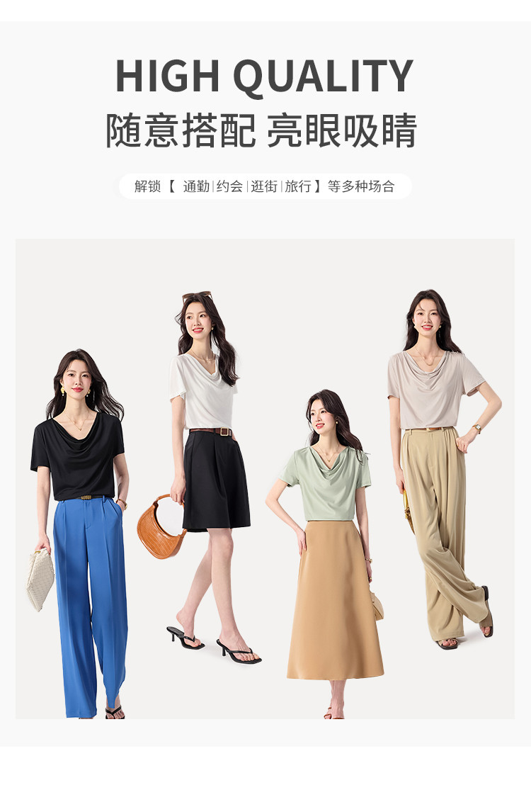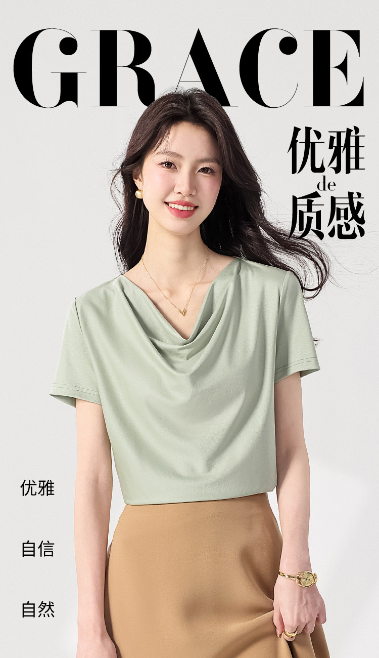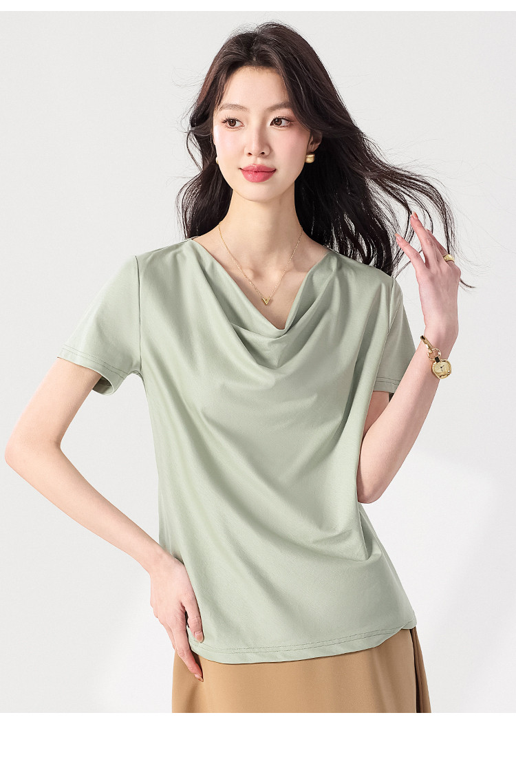 商品名称:夏季轻薄透气纯色短袖含桑蚕丝针织打底衫T恤空调衫 460691