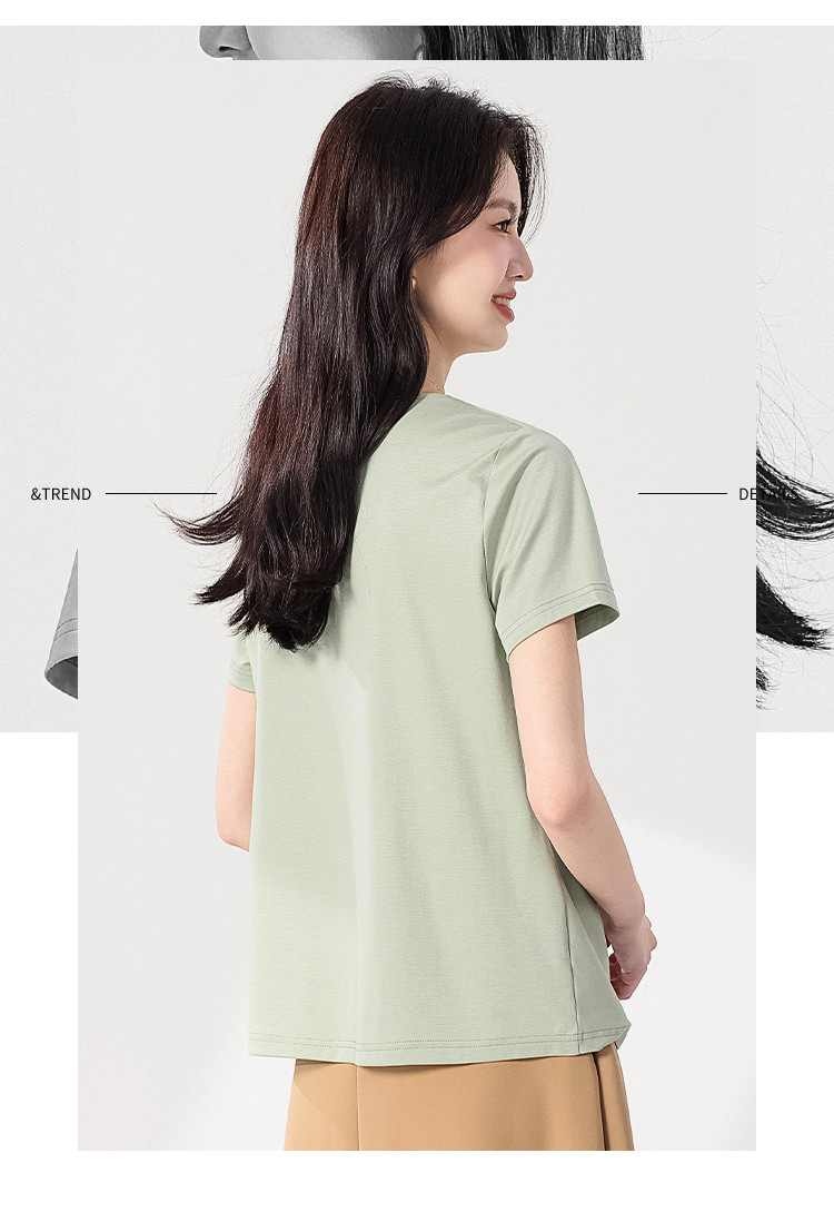 米子旗夏季圆领简约纯色女式T恤宽松休闲显瘦短袖上衣 172378